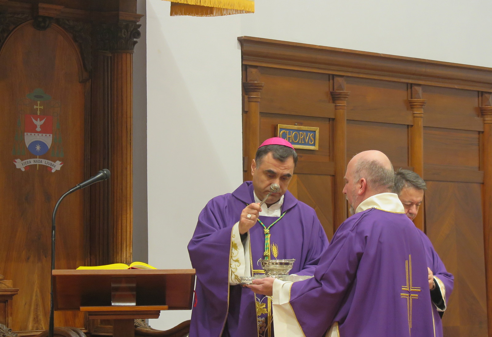 Biskup je na misi, na kojoj se okupio veliki broj vjernika, blagoslovio pepeo kojim je onda, zajedno s katedralnim vikarima, posipao vjernike po glavi.