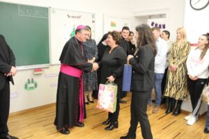 Potom je zahvalio svim djelatnicima za njihov predani i odgovorni rad, istaknuvši da je riječ o službi koja je istodobno puna izazova, ali dragocjena i zahtjevna. Pozvao ih je da u osobnom, obiteljskom i profesionalnom životu ostanu oslonjeni na Krista, osobito u poteškoćama i nerazumijevanjima. Ujedno ih je potaknuo na uključivanje u Susret hrvatske katoličke mladeži koji će biti održan 2. i 3. svibnja sljedeće godine u Požeškoj biskupiji.