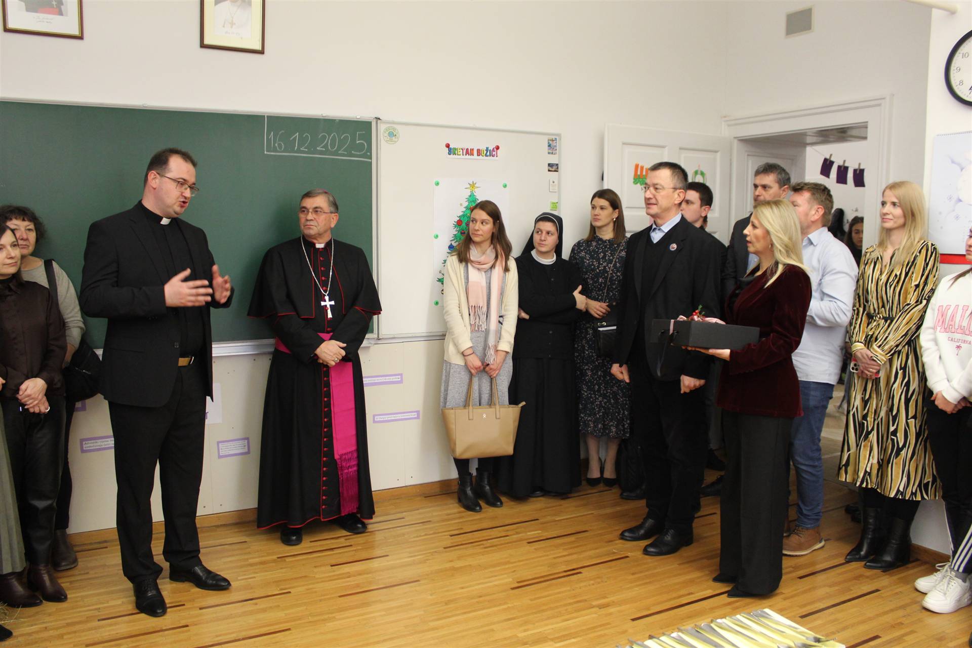 Potom se prisutnima obratio biskup Martinović zahvalivši upravitelju Jurakoviću na riječima pozdrava i čestitke te je istaknuo zajedničko poslanje svih koji djeluju u odgoju i obrazovanju. Naglasio je da svi djelatnici, bez obzira na službu koju obnašaju, sudjeluju u istom poslanju, a to je poslanje naviještati Isusa Krista, dodavši kako je Kristovo utjelovljenje i dolazak na svijet temelj vjere i odnosa prema Bogu i čovjeku. Istaknuo je vrijednost svake odgojno-obrazovne ustanove i svake osobe uključene u odgojno-obrazovni sustav, naglasivši da Crkva želi kroz njihov rad svjedočiti Isusovu ljubav i karitativno djelovanje.