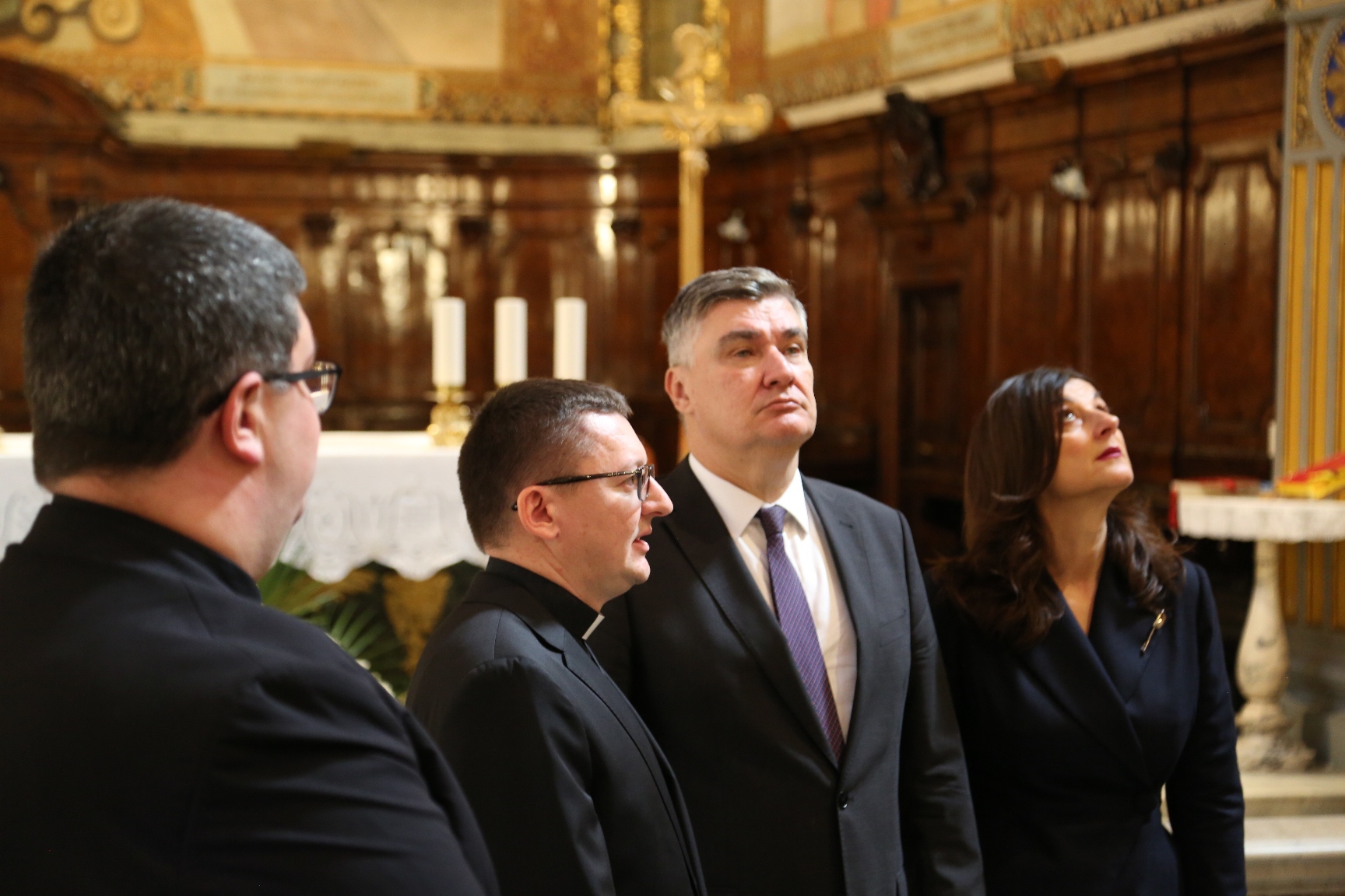 Predsjednika Milanovića i članove delegacije na ulazu u Hrvatsku crkvu sv. Jeronima dočekali su rektor Zavoda Marko Đurin i vicerektor Marko Škraba. Nakon kratkog razgledavanja crkve, predsjednik se uputio u prostore Zavoda gdje je održan prigodni susret i druženje na kojem su sudjelovali svećenici studenti iz Zavoda.
