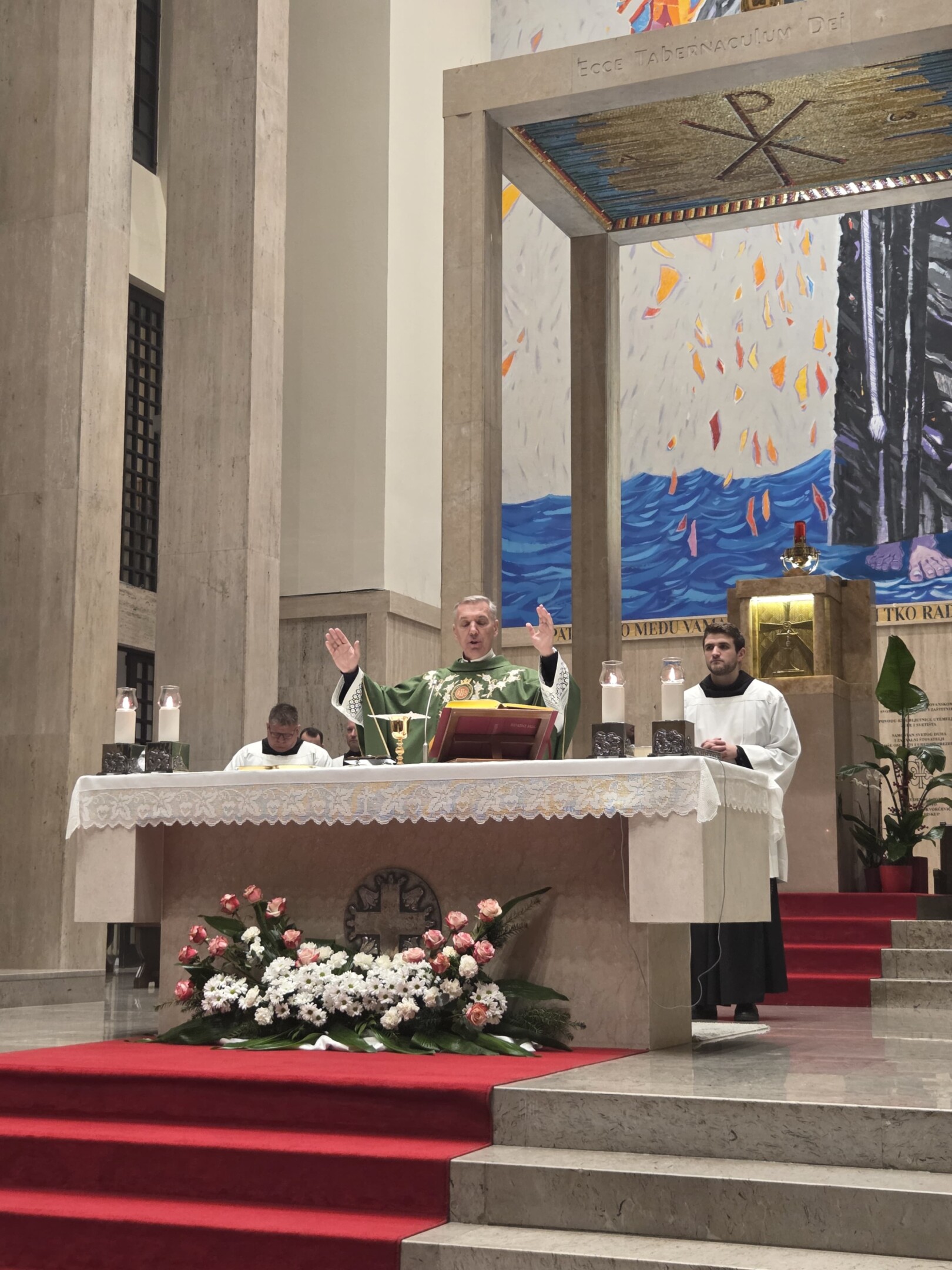 Program je počeo euharistijskim slavljem koje je predslavio provincijal Hrvatske provincije sv. Jeronima franjevaca konventualaca fra Miljenko Hontić uz koncelebraciju brojnih svećenika, a liturgijsko slavlje i predstavljanje knjige glazbeno je vodio zbor Put mira i obitelj Linde. O knjizi su govorili v. d. glavnog urednika Veritasa fra Ivan Marija Lotar i autor pogovora fra Milan Gelo, dok je program moderirala Tanja Maleš.