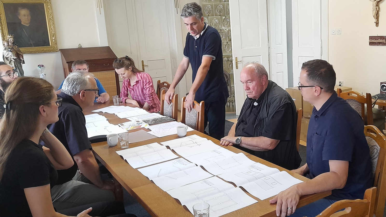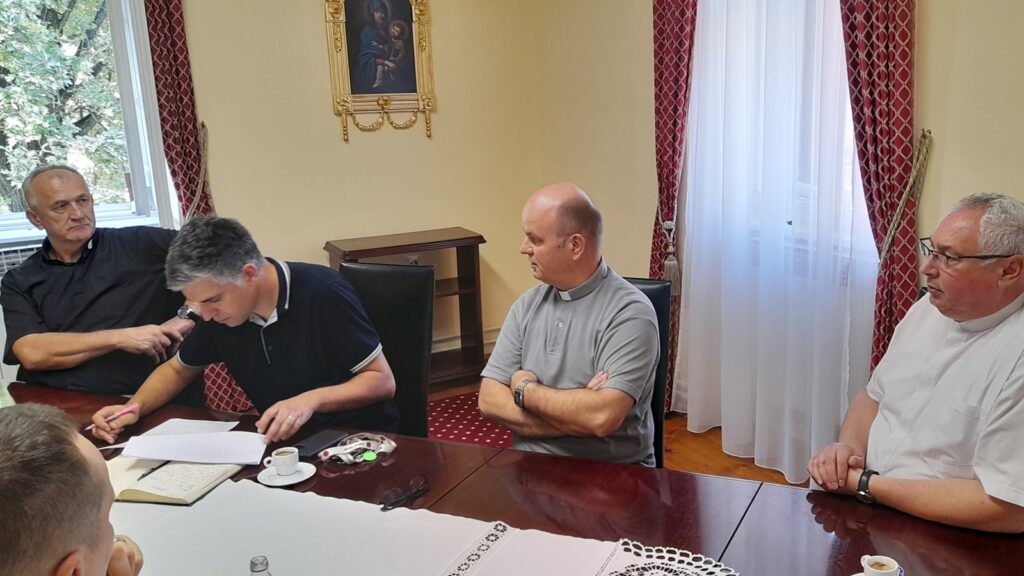 Susret je započeo u Biskupskom ordinarijatu u Srijemskoj Mitrovici, gdje su se predstavnici Đakovačko-osječkog Caritasa susreli sa srijemskim biskupom Fabijanom Svalinom, generalnim vikarom Josipom Ivešićem te suradnicima Caritasa Srijemske biskupije. Razgovaralo se o izazovima s kojima se suočava tamošnji Caritas i hrvatski narod u Republici Srbiji, kao i o mogućim rješenjima kroz zajedničke projekte. Sugovornici su naglasili kako je dosadašnja suradnja dvaju Caritasa dobra i kvalitetna te da je važno nastaviti tim smjerom.