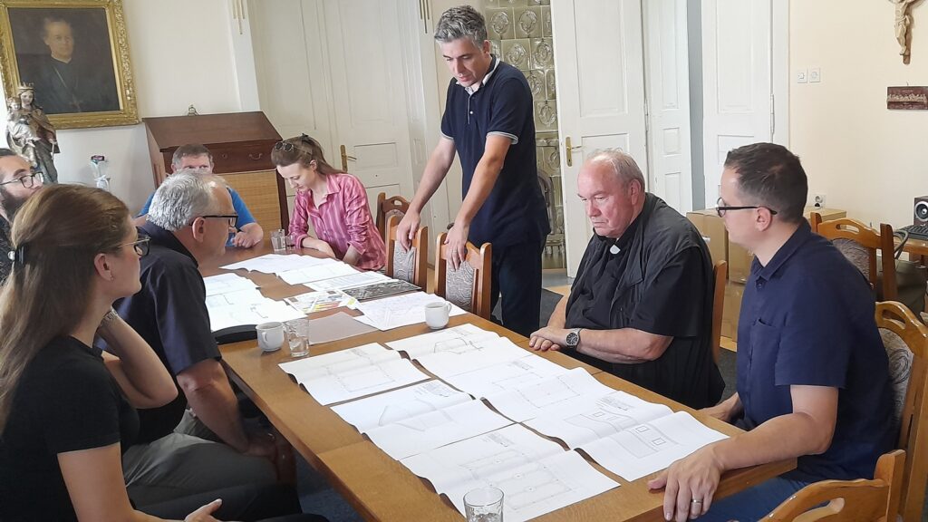 Delegacija je potom posjetila župu Hrtkovci, gdje Caritas Srijemske biskupije planira izgradnju skladišta za bolesničke krevete i druga pomagala. Tamo su ih dočekali mons. Jozo Duspara, direktor Caritasa Srijemske biskupije, i domaći župnik vlč. Ivica Živković. Petar Dujić, koordinator Caritasa Srijemske biskupije, predstavio je napredak projekta i buduće planove, dok su u nastavku susreta Dujić i Ivan Birkić, voditelj Ureda za projekte Đakovačko-osječke nadbiskupije, održali edukaciju o mogućnostima korištenja EU fondova.