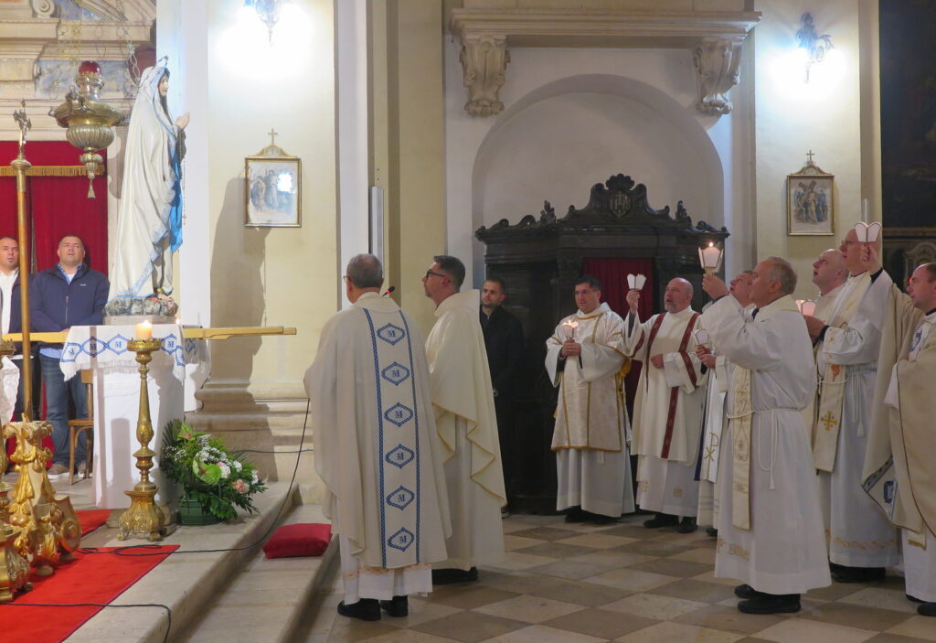 Na kraju mise uslijedila je procesija s Gospinim kipom kroz crkvu, a vjernici su s upaljenim svijećama pjevajući poznatu marijansku pjesmu “Sred te se pećine” donijeli djelić molitvenog lurdskog ozračja u dubrovačku crkvu sjedinjujući se u molitvi s cijelom Crkvom koja se na blagdan Gospe Lurdske posebno obraća Mariji.