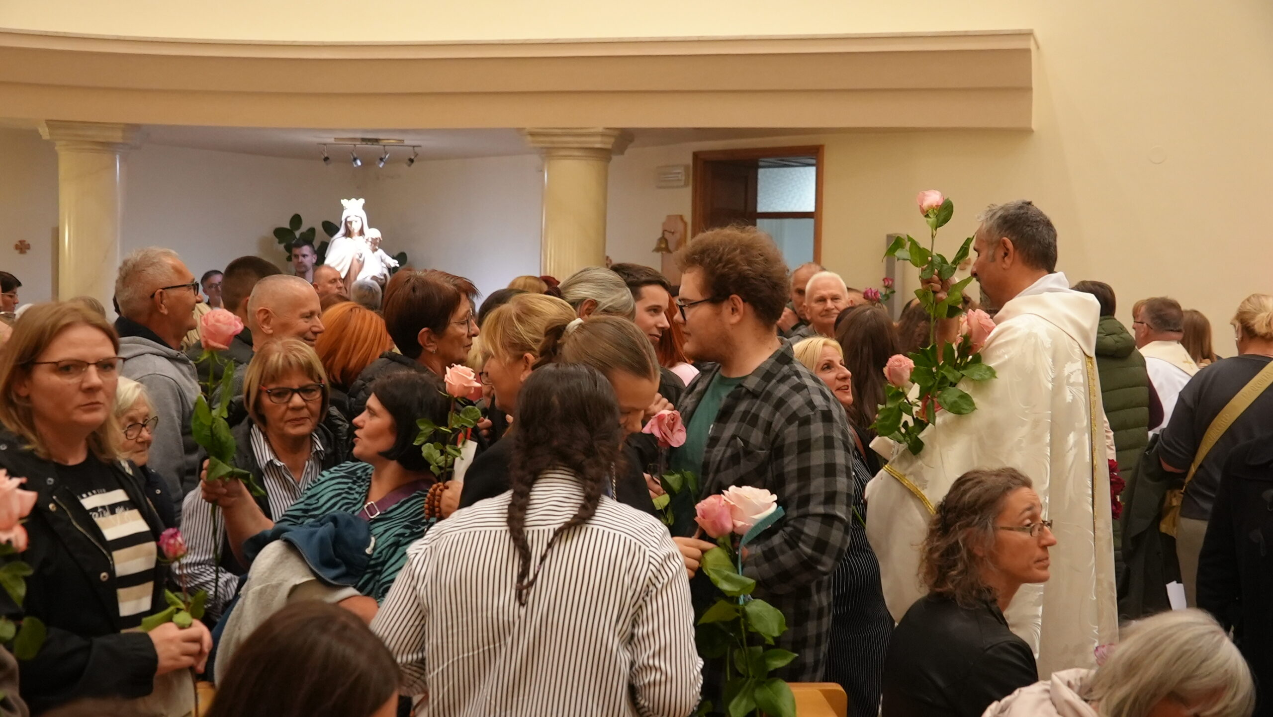 Na kraju misnog slavlja prof. Raguž je uime sestara i svoje osobno ime pozdravio sve hodočasnike, a napose one iz Vođinaca, Starih Mikanovaca i Cerne koji su došli organizirano sa svojim župnicima, kao i prisutne članove Škapularske bratovštine. Započinjući blagoslov ruža, uputio je hodočasnike da kada dobiju ružu ne traže odmah nešto za sebe, već da poput sv. Male Terezije, malim žrtvicama – odricanjima, nastoje izmamiti smiješak na Kristovu licu. Nakon blagoslova ruže su podijeljene prisutnim vjernicima, a prvu je dobila Anamarija – nova kandidatica u Karmelu sv. Josipa, kojoj je prof. Raguž poželio blagoslov u njezinu hodu prema redovničkom životu.