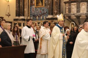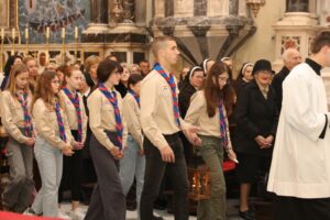Na početku slavlja katolički skauti Odreda sv. Benedikta s vjeroučiteljicom Helenom Džakulom biskupu su predali Betlehemsko svjetlo mira koje su donijeli iz Linza.