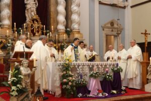 Večernje euharistijsko slavlje predslavio je dubrovački biskup Roko Glasnović uz koncelebraciju gvardijana franjevačkog samostana Male braće u Dubrovniku fra Tomislava Šanka, župnika don Marina Lučića te franjevce i druge redovnike iz različitih samostana.