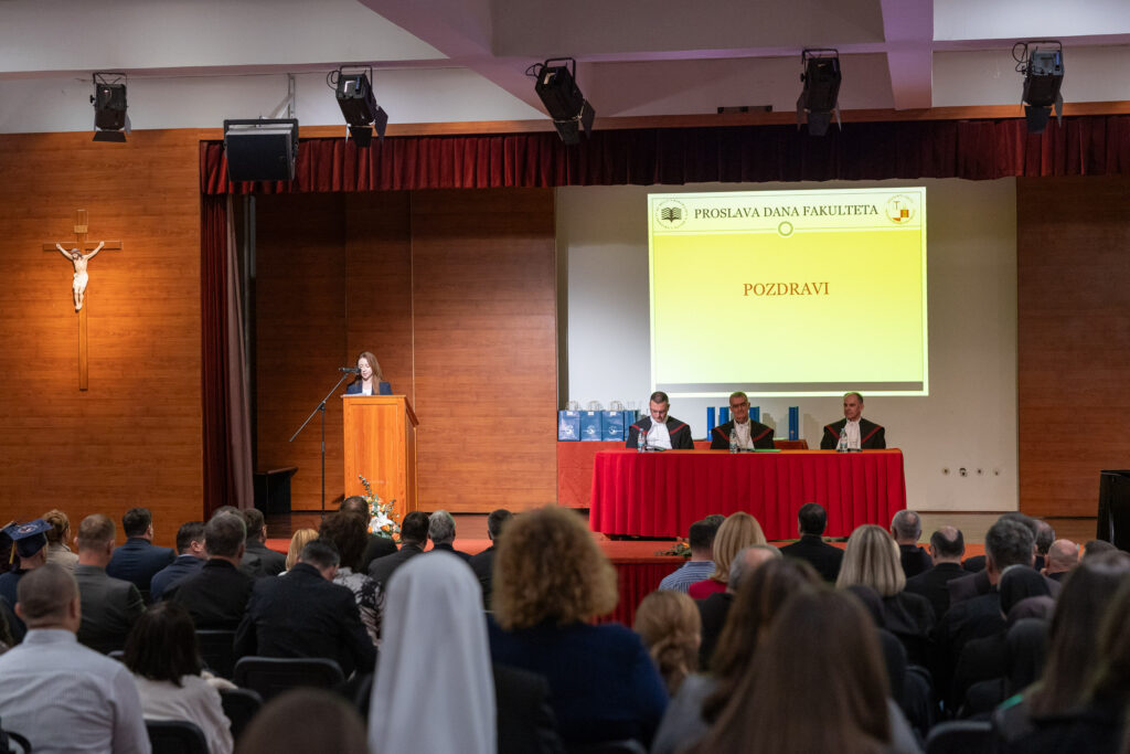 Povelje zahvalnosti dodijeljene su bivšim dekanima prof. dr. sc. Mladenu Parlovu i izv. prof. dr. sc. Šimunu Bilokapiću, a posebna priznanja dobile su djelatnice s. Petra Mirjana Šakić i Paola Jukić za izniman doprinos radu Fakulteta.