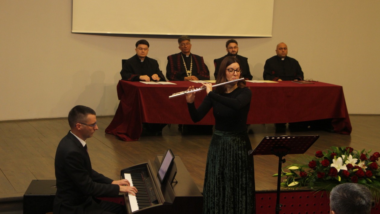 Prije akademskog čina promocije sveučilišnih magistara teologije „Preludij iz Suite antique (John Rutter)“ izveo je Duo Fabris. Uslijedio je akademski čin promocije sedam sveučilišnih magistara teologije te troje specijalista propedeutike psihoterapije i teoterapije. Prije dodjele godišnjih nagrada i priznanja Duo Fabris obogatio je program izvevši točku „Siciliana i Allegro iz Sonate u F duru (G. F. Händel)“