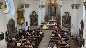 Nakon nagovora župnog vikara vlč. Antonija u župnoj crkvi Svetih Euzebija i Poliona slavljena je je svečana misa povodom Dana grada Vinkovaca na kojoj su sudjelovali gradonačelnik Romić s gradskim izaslanstvom, župan Vukovarsko-srijemske županije Ivan Bosančić te brojni drugi predstavnici kulturnih, društvenih, sportskih i ostalih udruga i institucija grada Vinkovaca.