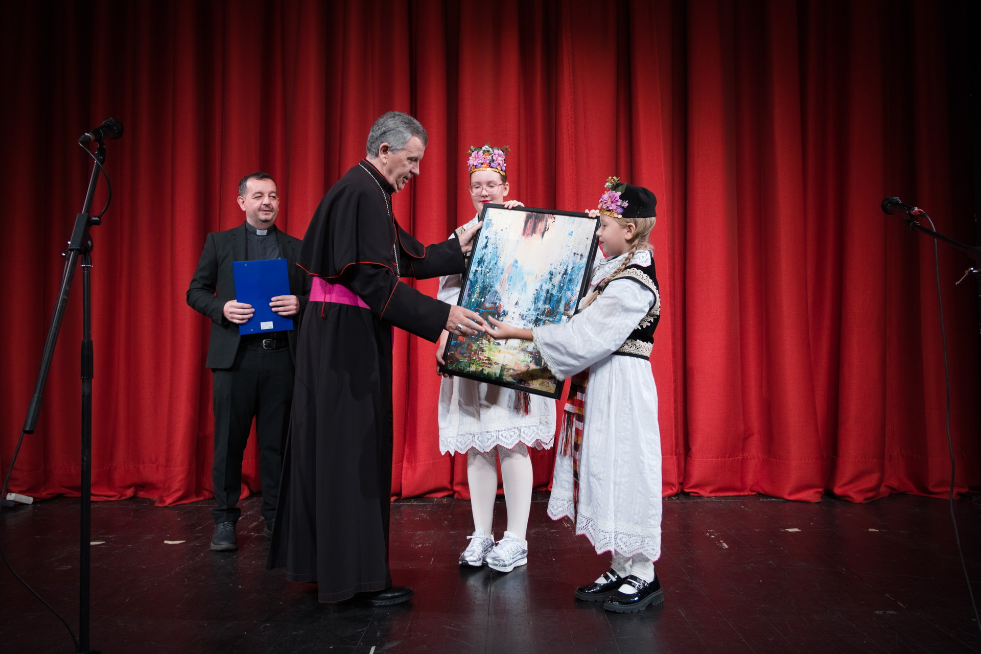 Nakon mise u Narodnom kazalištu učenici su predstavili dio svojih aktivnosti. U središtu je bila izvedba Shakespeareove predstave „Hamlet“ u režiji Ivane Petrović, koja je uslijedila nakon programa kojeg su animirali učenici. Dodijeljen je dar nadbiskupu te jednom od djelatnika koji je otišao u mirovinu.