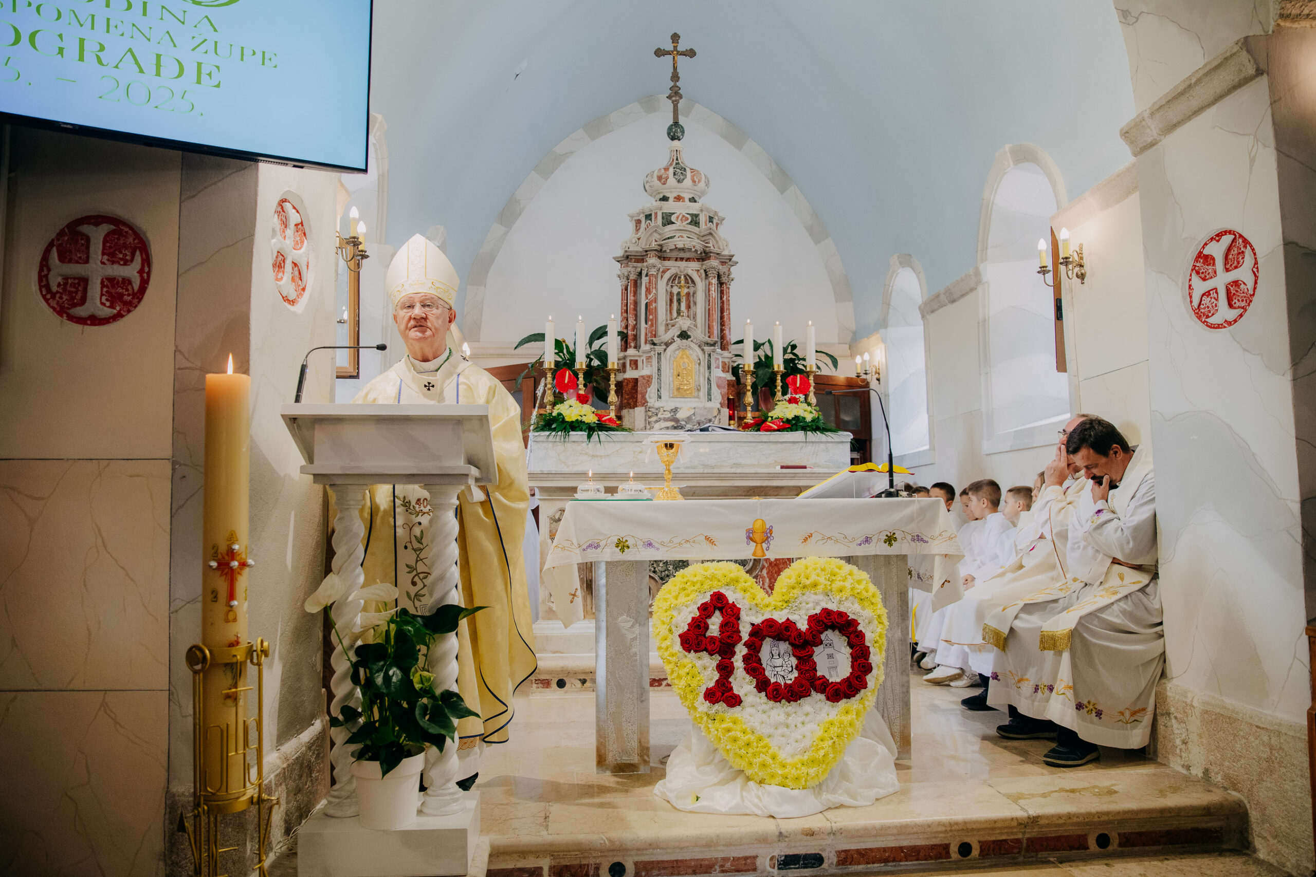 Nakon mise slavlje se nastavilo u dvorištu crkve gdje su se župljani i njihovi gosti mogli nabaviti spomen-knjige i rekvizite izdane povodom ovog velikog jubileja.