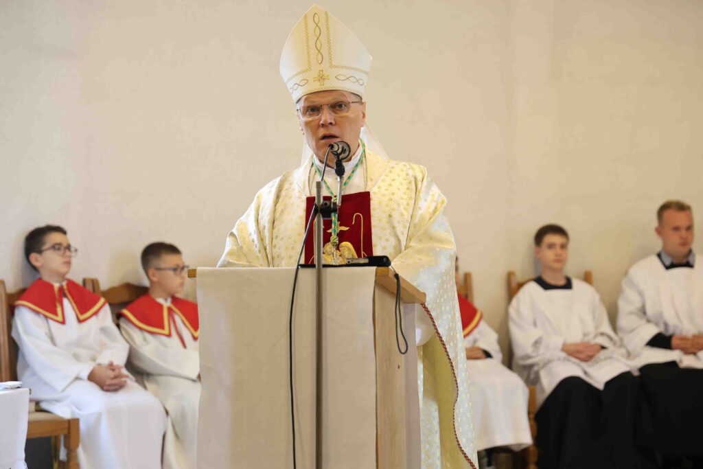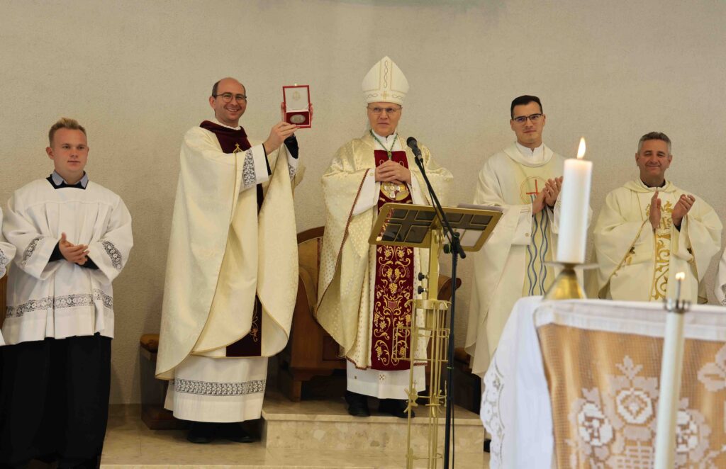 Nadbiskup je zahvalio Bogu za sadašnjeg župnika Lackovića, koji je naslijedio prvoga župnika te župe vlč. Davida Sluganovića, ustvrdivši kako je jednakom gorljivošću nastavio njegovu službu. „Hvala našim redovnicama Klanjateljicama Krvi Kristove, koje su došle podržati život ove župne zajednice, na njihovoj požrtvovnosti i skromnosti i svemu što su utkale u duhovni rast mladih naraštaja. Zahvaljujem župnim suradnicima, članovima župnih vijeća, vjeroučiteljima, katehetama, te roditeljima, djedovima i bakama koji su se trudili da njihove obitelji budu i rastu kao kućna Crkva i da se kao zdrave temeljne stanice Crkve po obiteljskoj molitvi, osobnim svjedočenjem vjere, po vjerskom odgoju u obitelji te po nedjeljnoj misi, sakramentalnom životu i župnoj katehezi ugrađuju u ovu župnu zajednicu i svjedoče vjeru onima koji se ovamo doseljavaju“, rekao je nadbiskup.