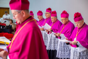 Na početku okupljene je pozdravio domaći biskup, čestitavši blagdan i izrazivši nadu u povratak u obnovljenu katedralu. „Nadam se da je to posljednji put da slavimo Križevo izvan katedrale. Ona se rađa, ona se obnavlja. Možda i polako, ali nadamo se da će to biti sljedeće godine“, rekao je biskup, zaključivši rečenicom iz Časoslova „Ave, crux, spes unica – Zdravo Križu, nado jedina“.