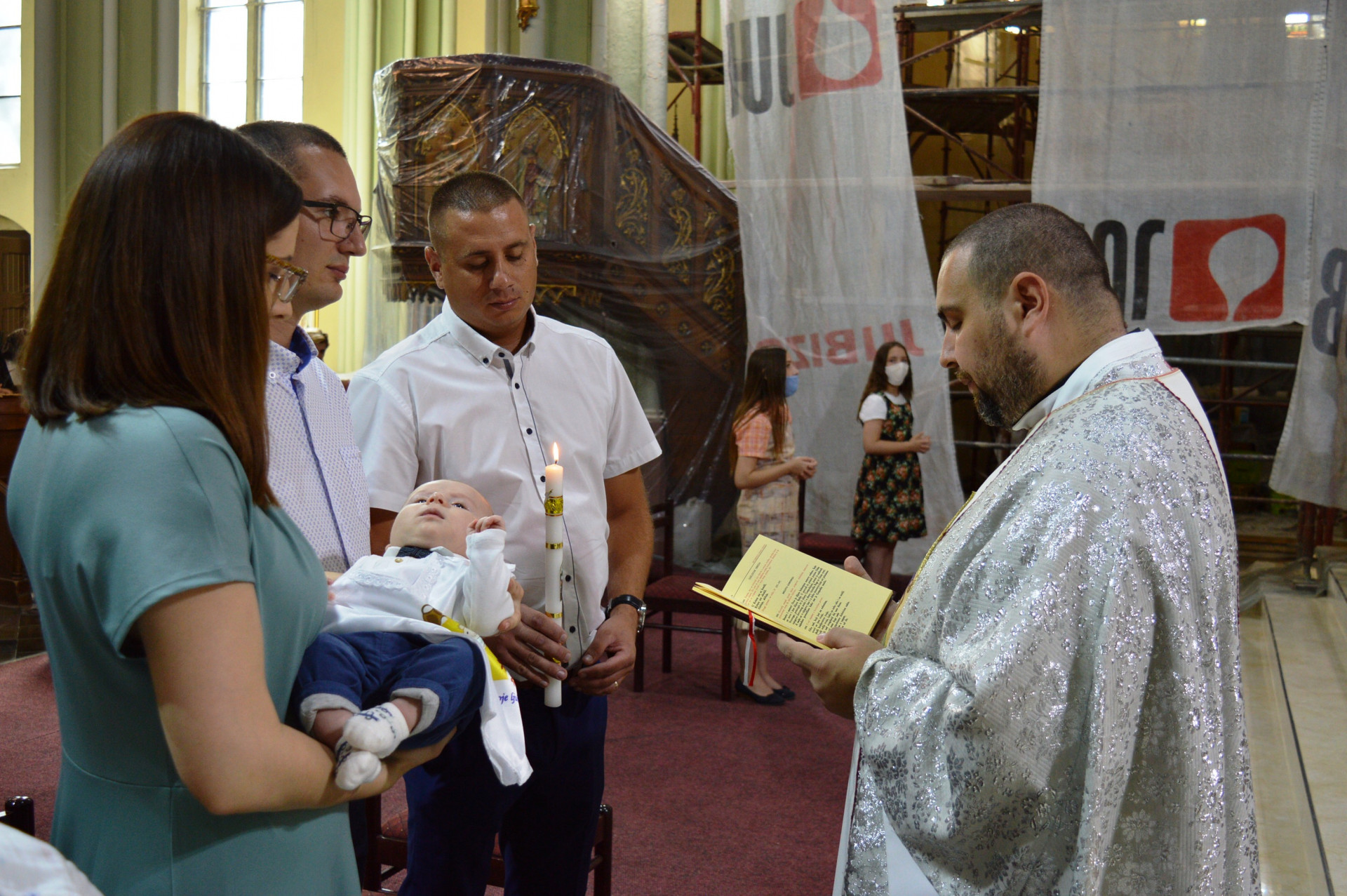 Na župnoj jutarnjoj misi vlč. Skenderović krstio je najmlađeg župljanina Filipa Gabrića.
