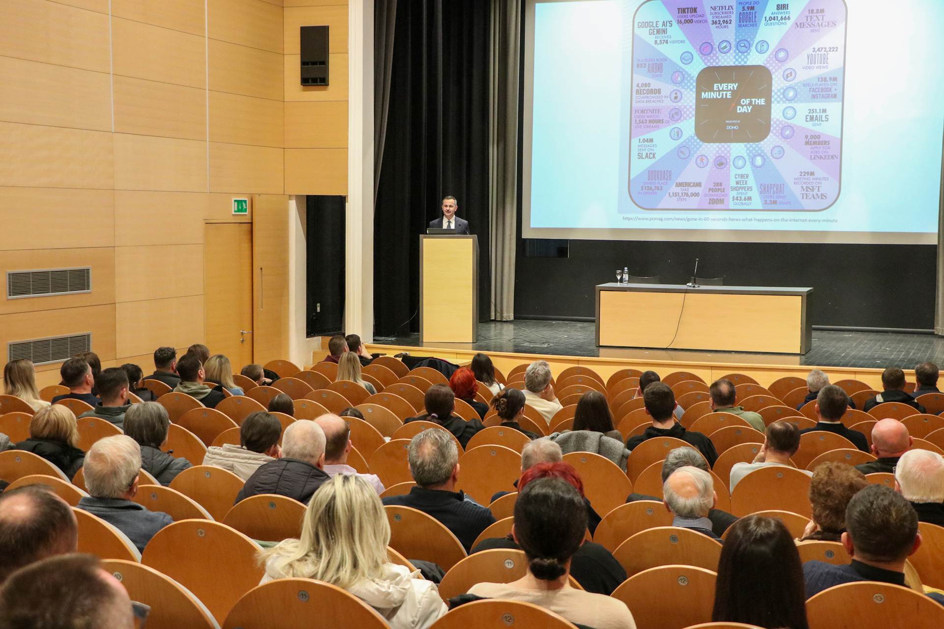Dr. Kanižaj u predavanju je govorio o tome kako algoritmi oblikuju našu svakodnevicu, od sadržaja koje gledamo na društvenim mrežama do načina na koji donosimo odluke, komuniciramo i gradimo odnose. Posebno je istaknuo kako algoritmi preporuka i rangiranja potiču brze emocije, često na štetu promišljenog i kritičkog razmišljanja. U tom je kontekstu citirao Poruku pape Lava XIV. za Svjetski dan sredstava društvenih komunikacija, istaknuvši potrebu za odgovornošću, suradnjom i obrazovanjem u digitalnom prostoru.