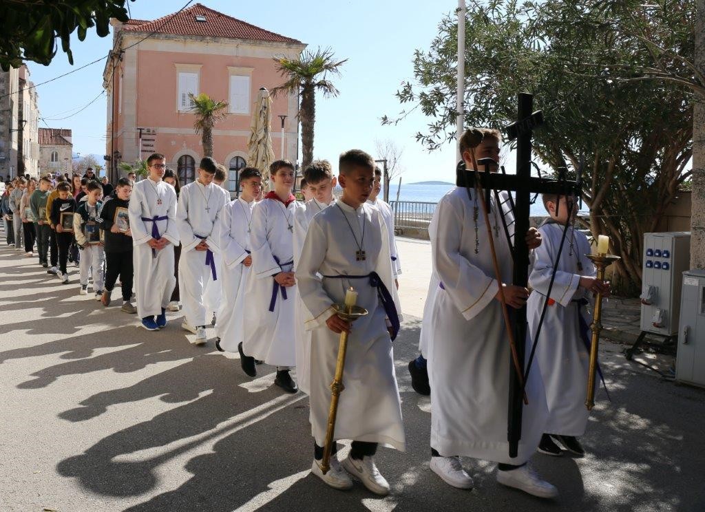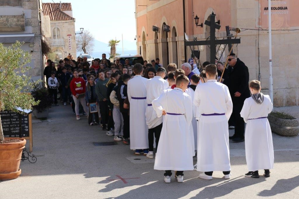 Križni put u Orebiću predvodio je župnik don Marko Stanić, a sudjelovalo je nešto više od stotinu djece. S djecom su molili dekan Pelješkog dekanata don Tonći Ante Prizmić i župnik iz Vignja don Mario Karatović. Sudionici križnog puta krenuli su iz župne crkve Marije Pomoćnice, popeli se na Ulicu Kralja Tomislava, spustili na obalu i pobožnost završili u crkvi.