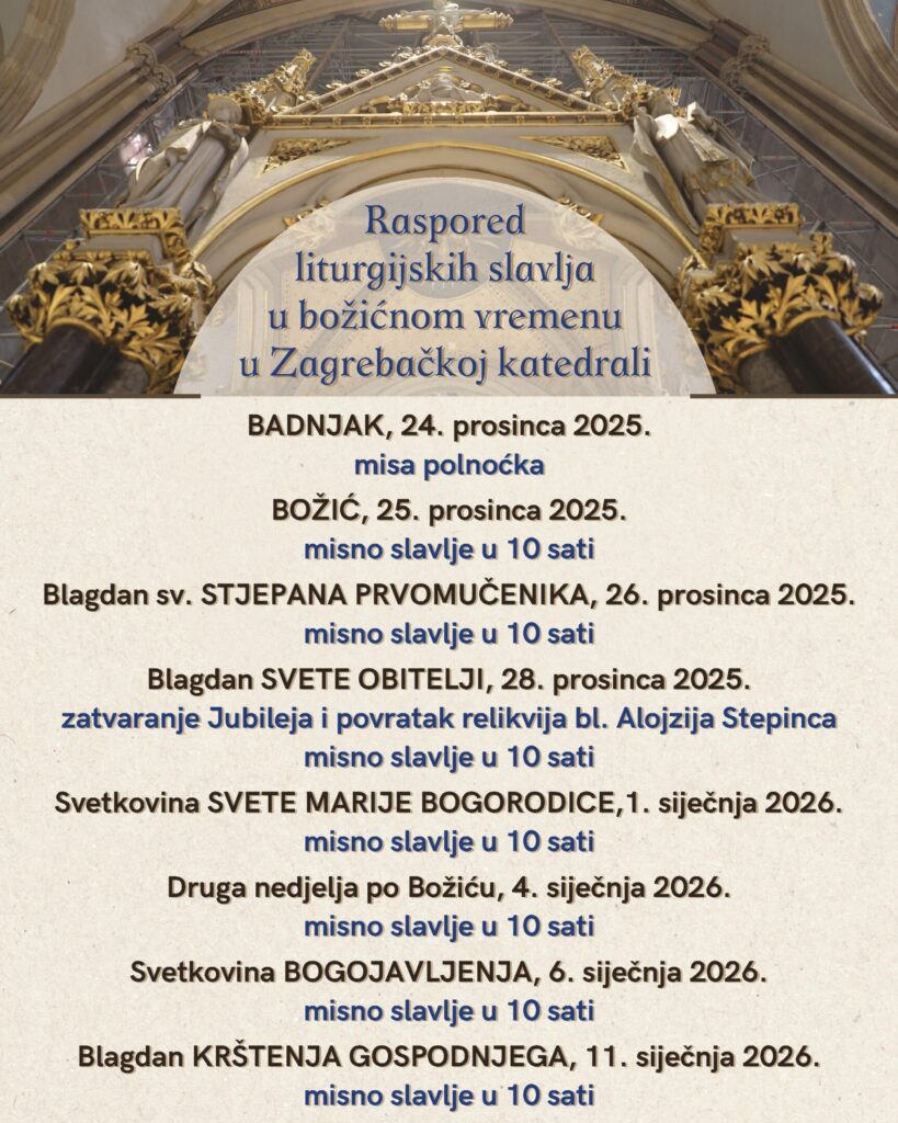 Raspored misnih slavlja u božićnom vremenu u Zagrebačkoj katedrali i u Bogoslužnom prostoru bl. Alojzija Stepinca