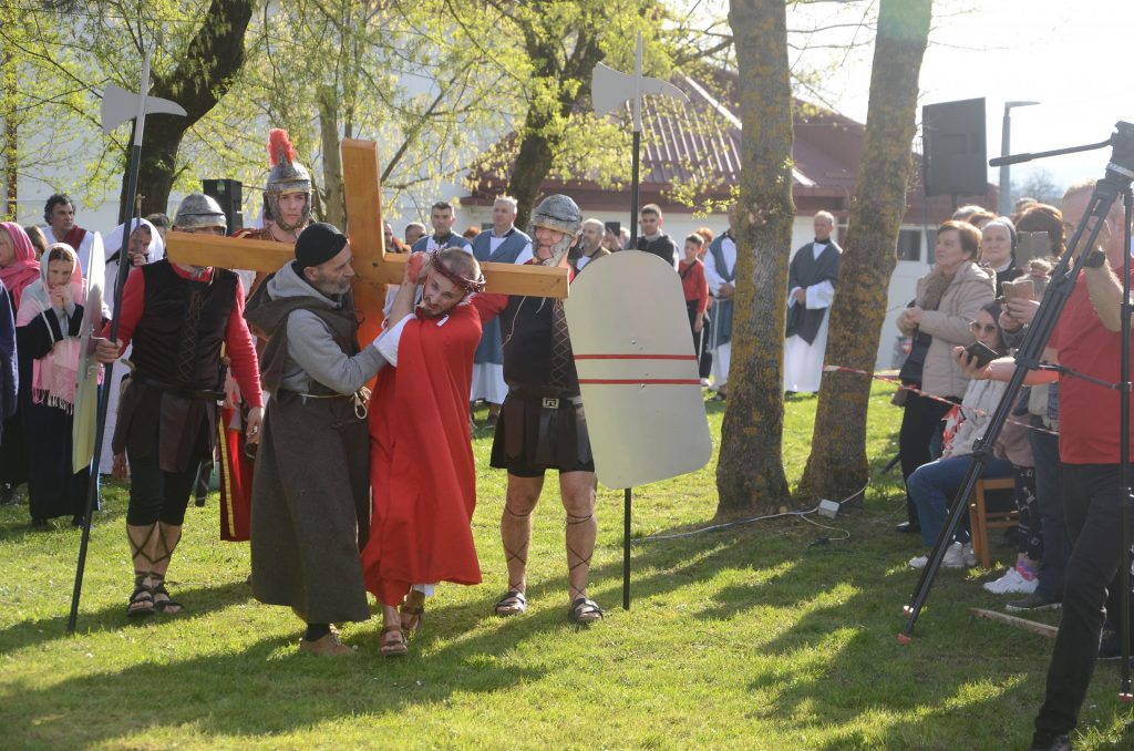 Sedamdesetak članova udruge „Stepinčeva oaza mira” iz župe sv. Petra apostola iz Zaprešića su 26. ožujka uprizorili posljednje dane Kristova života i njegovu muku u parku na Trgu Velike Gospe, koji se prostire uz župnu crkvu Uznesenja Blažene Djevice Marije u Brodskom Vinogorju u Slavonskom Brodu.