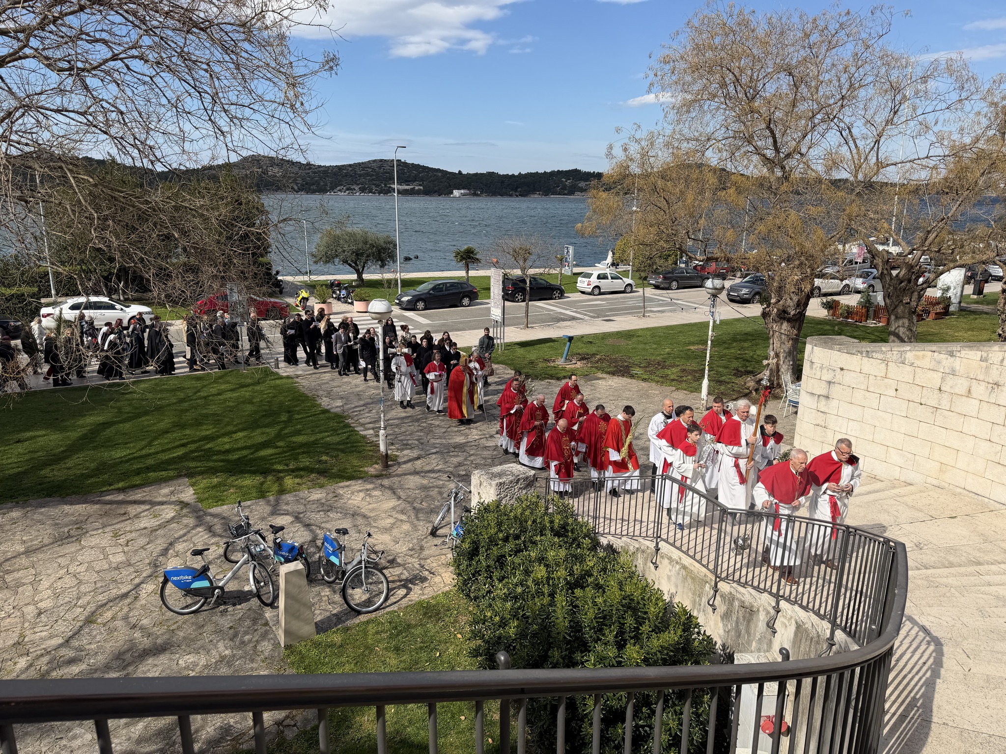 Nakon obreda blagoslova svečana procesija, predvođena šibenskim biskupom mons. Tomislavom Rogićem, krenula je prema katedrali sv. Jakova. Uz biskupa Rogića u koncelebraciji su bili umirovljeni biskup Ante Ivas i generalni vikar mons. Tomislav Subotičanec, uz sudjelovanje više svećenika i okupljenih vjernika.