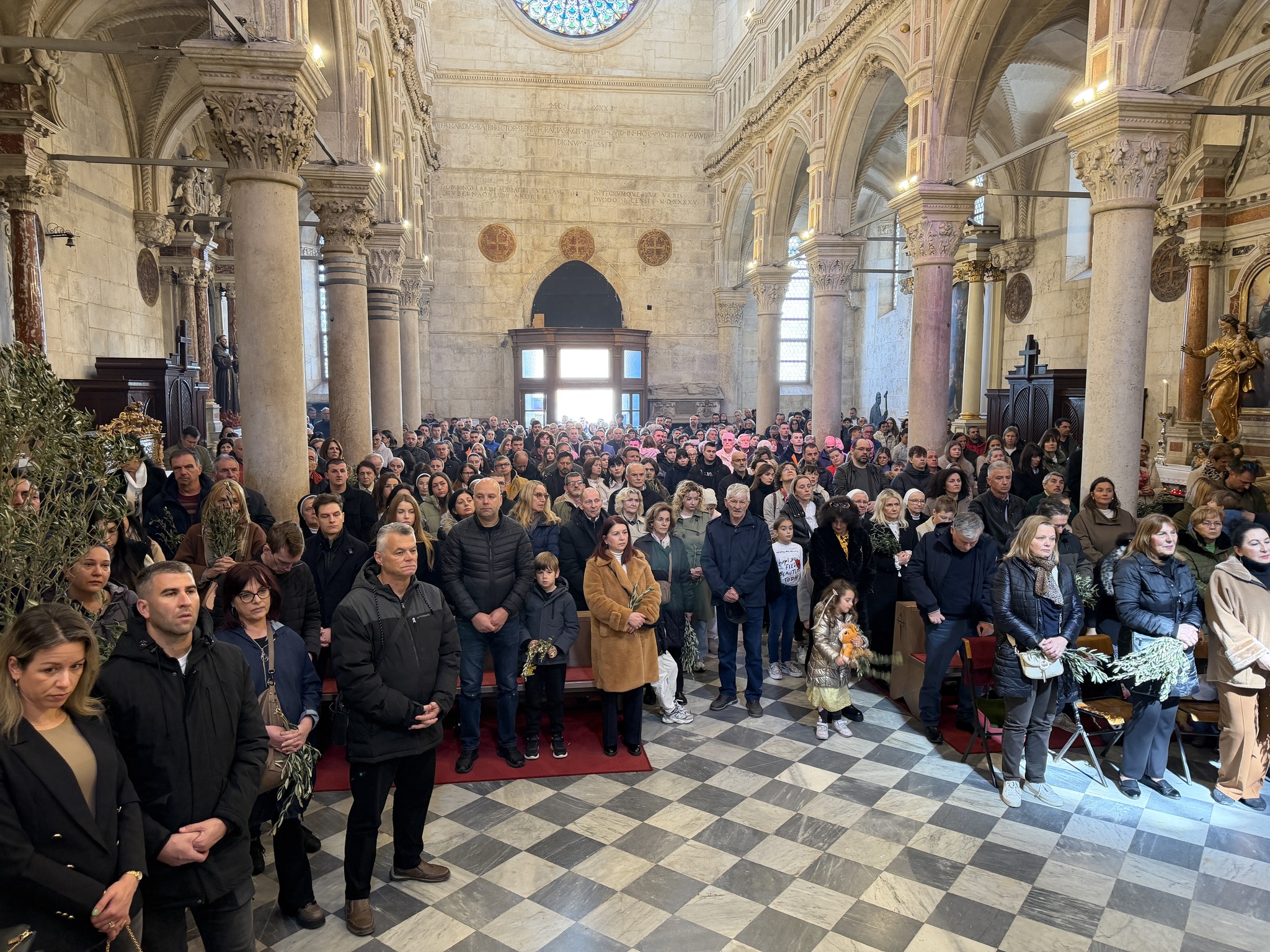 Vjernici grada Šibenika proslavili su 29. ožujka Nedjelju Muke Gospodnje, čime su i službeno zakoračili u Veliki tjedan, najsvetije vrijeme liturgijske godine. Tradicionalno okupljanje započelo je na Trgu Pavla Šubića, gdje su se brojni građani okupili s maslinovim grančicama u rukama, izvijestila je Šibenska biskupija.