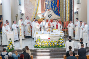 Sisački biskup Vlado Košić predvodio je na Uskrsni ponedjeljak, 6. travnja, misno slavlje u crkvi Sv. Marije Kraljice Mira u Sisku, tijekom kojeg su među kandidate za sveti red primljeni bogoslovi Ivan Kurevija, Matija Novak i Tomislav Rešetar, izvijestio je Ured za Odnose s javnošću Sisačke biskupije.
