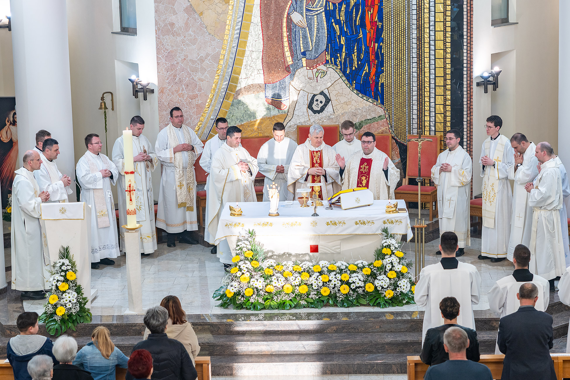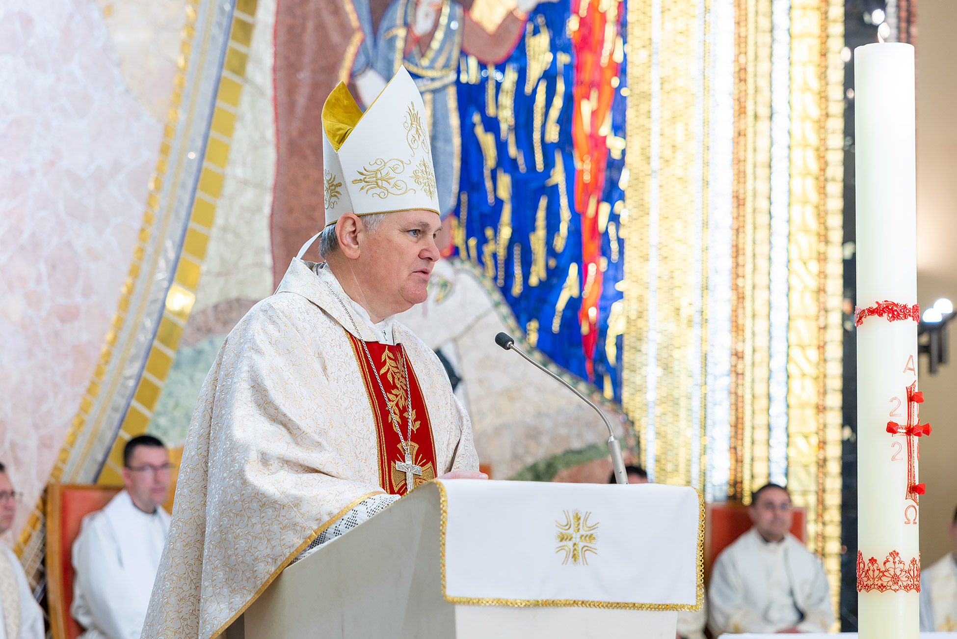Osvrćući se na liturgijska čitanja, najprije je istaknuo Petrovo svjedočanstvo iz Djela apostolskih, podsjetivši da onaj koji je nekoć Isusa zatajio sada, nakon obraćenja, hrabro naviješta uskrsnuće: „Nije ostavljen u Podzemlju niti mu tijelo truleži ugleda. Toga Isusa uskrisi Bog! Svi smo mi tomu svjedoci.“ Na toj je osnovi biskup pojasnio da je upravo svjedočenje Kristova uskrsnuća bilo presudno pri izboru apostola Matije na mjesto Jude te dodao da su i biskupi i svećenici, kao nasljednici apostola, pozvani prije svega svjedočiti da je Isus živ i uskrsnuo.