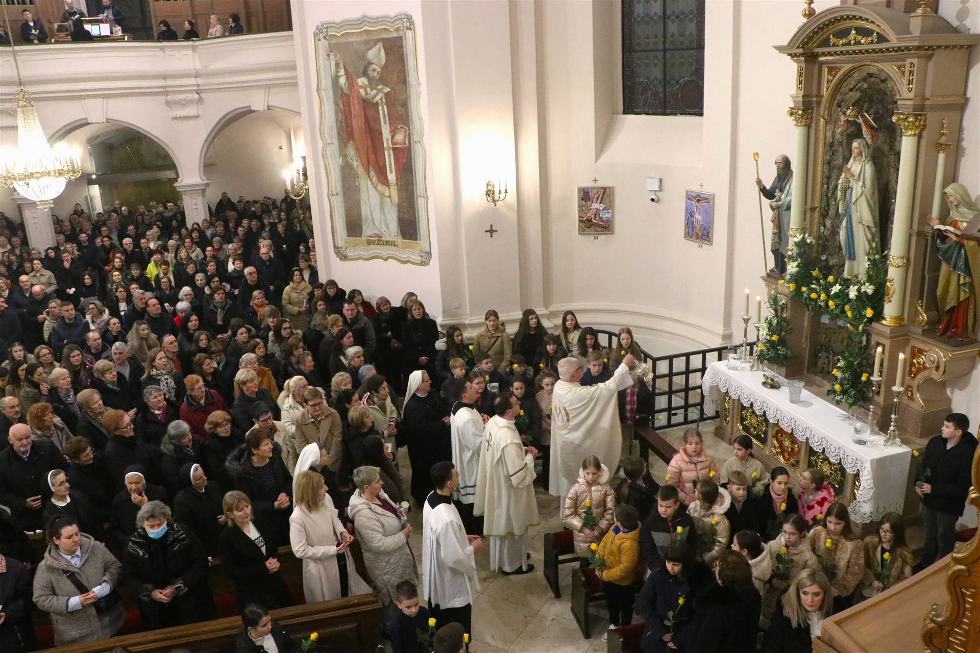 Na početku slavlja djeca su uputila pozdrave Gospi Lurdskoj pjevajući i prinoseći ruže pred Gospin lik.