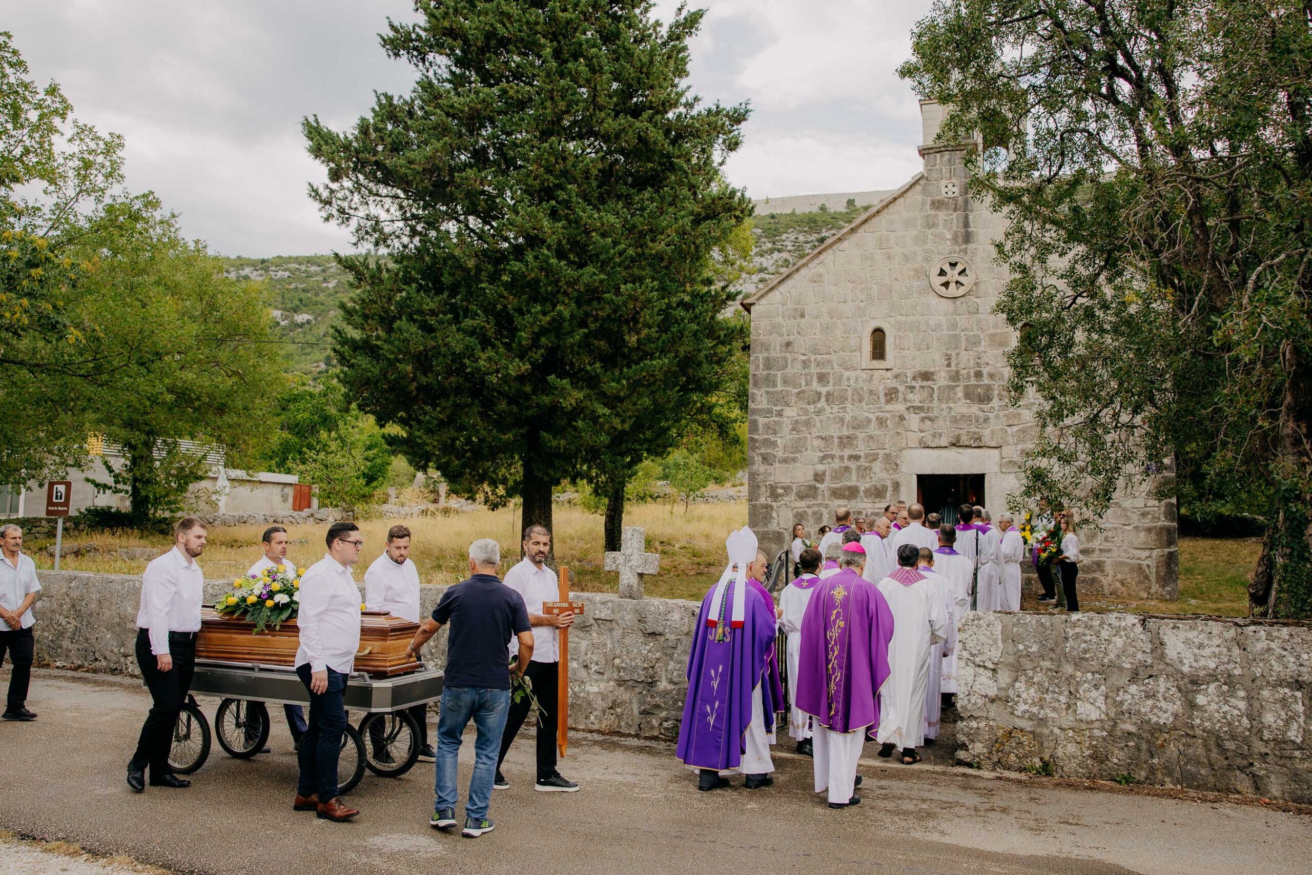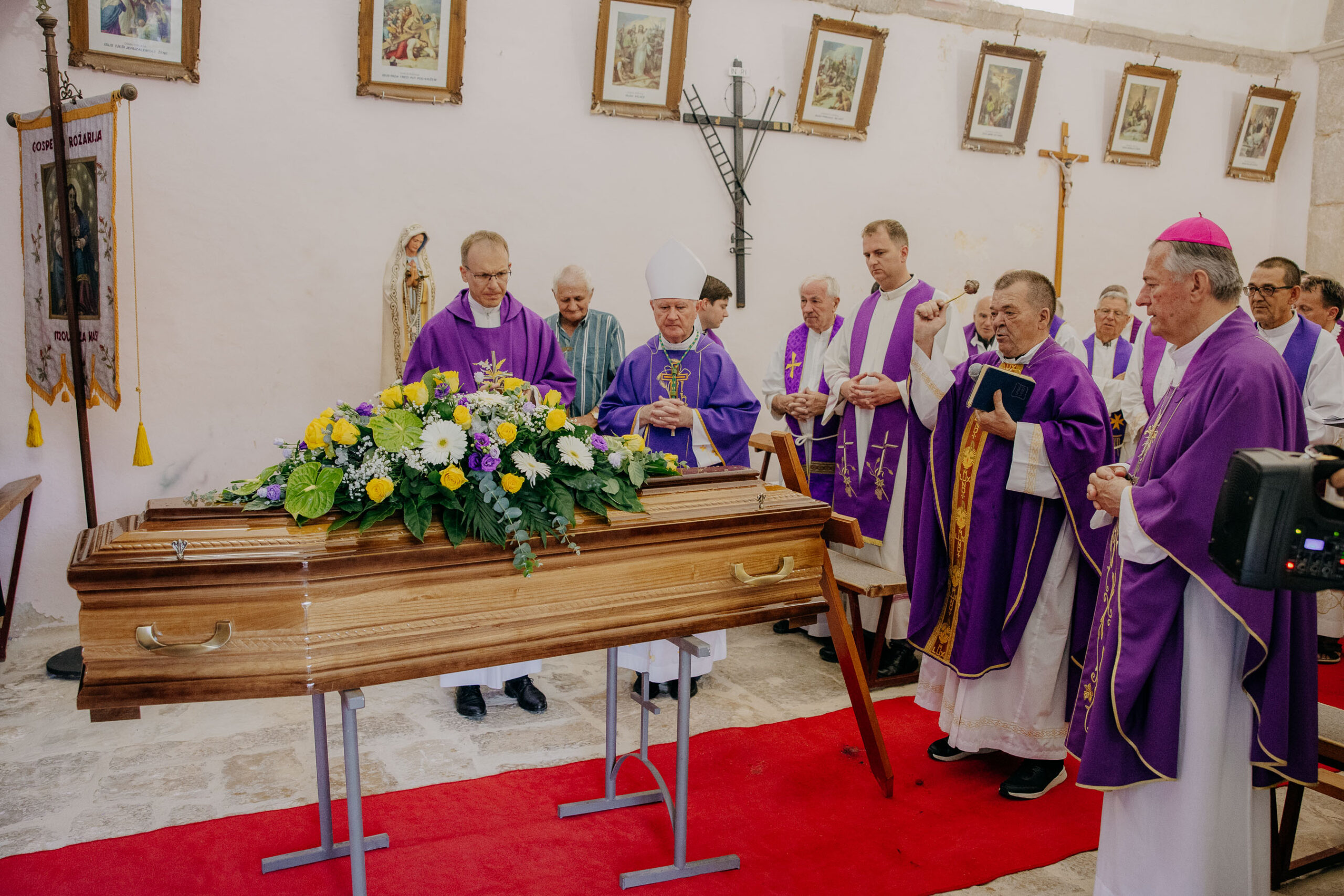 Potom su uslijedili sprovodni obredi koje je predvodio župnik don Ivan, a svećenici su zajednički otpjevali „Salve regina“. Pjevanje su vodili svećenici predvođeni mo. don Šimom Marovićem i don Jurom Vrdoljakom.