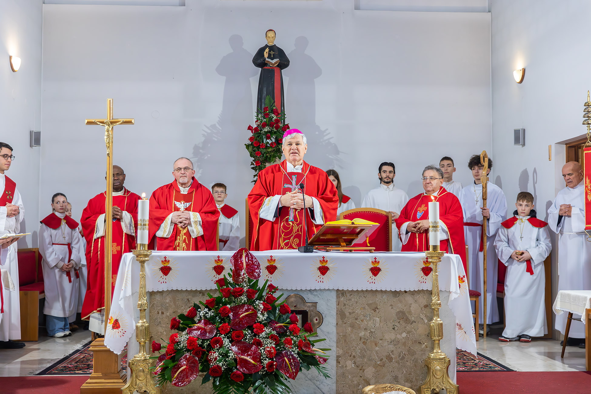 U zajedništvu s biskupom misu su slavili domaći župnik Mato Sukalić, župni vikar iz Kutine p. Alphonsom Mevoh i bivši župnik p. Andrezej Wosko, dok je službu đakona vršio Martin Radić.