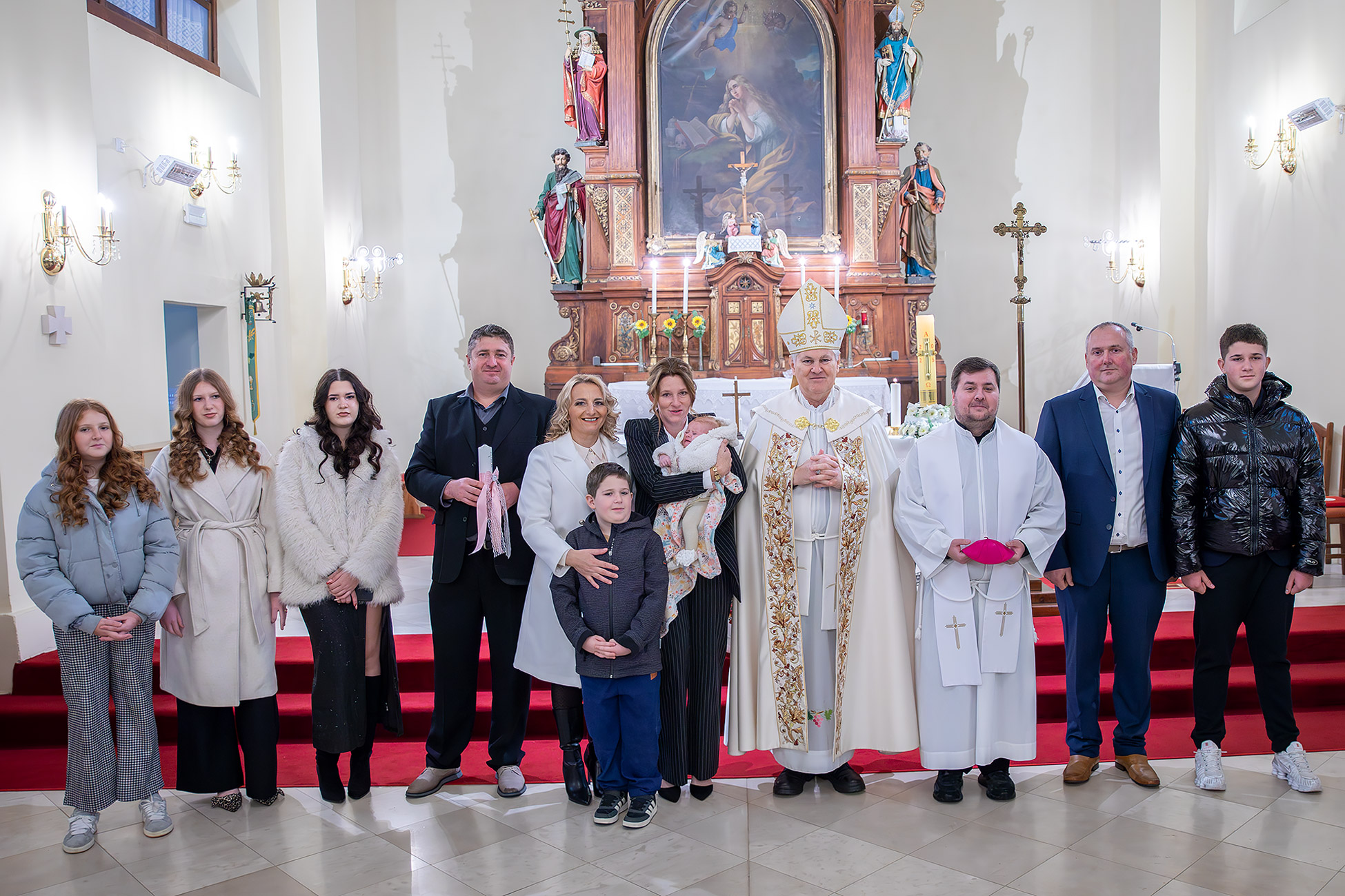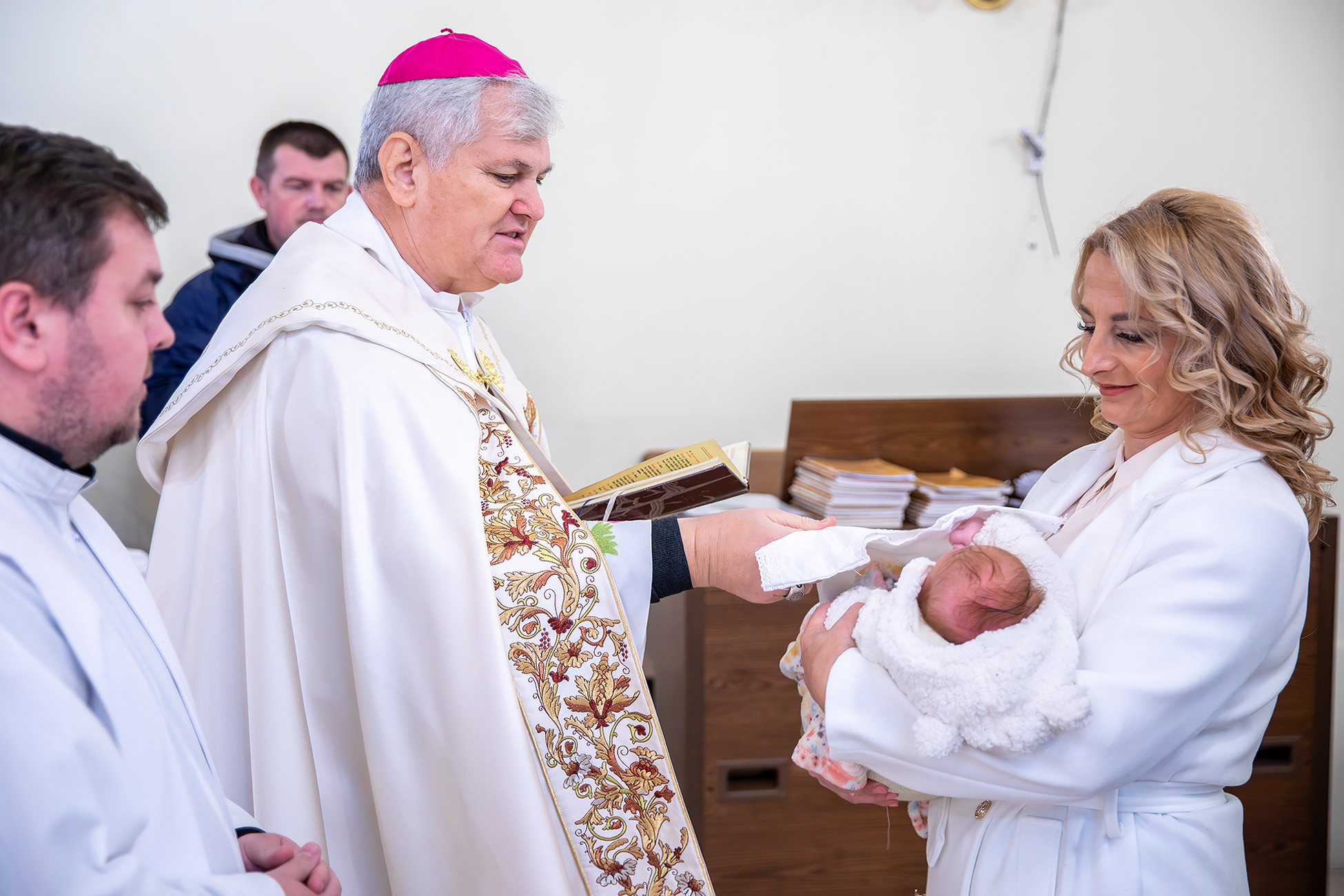 Po završetku krštenja biskup i župnik još su jednom čestitali roditeljima te im uručili prigodne darove biskupije.