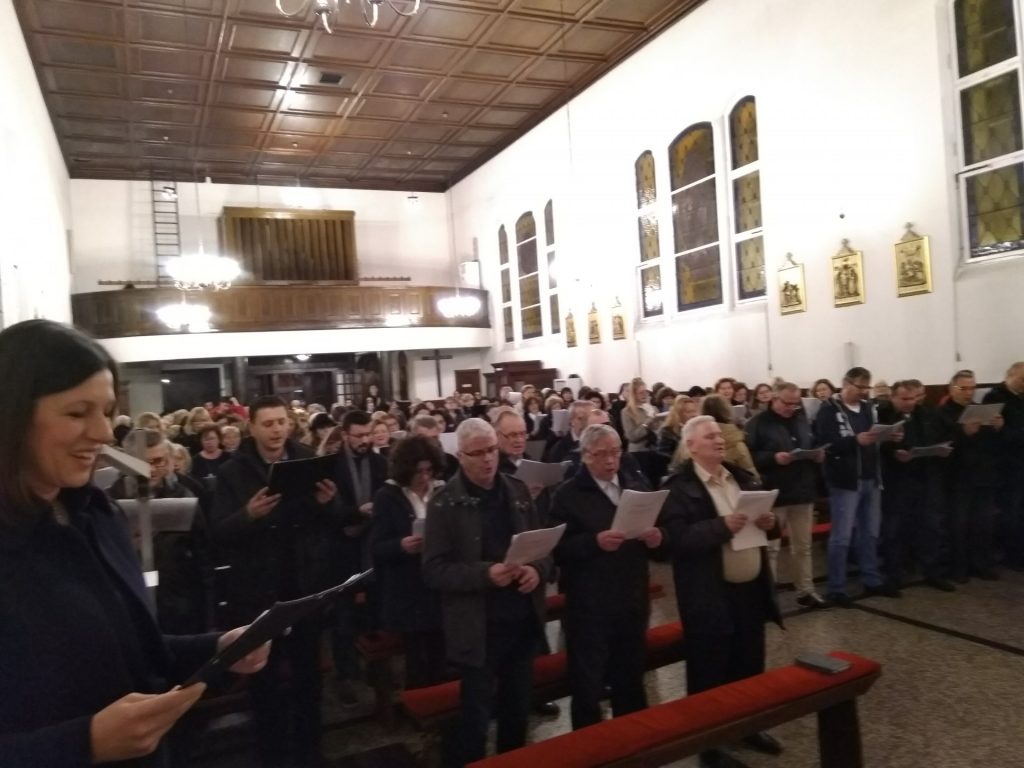 U pozdravu vlč. Mario Pavić uputio je pjevačima toplu dobrodošlicu, istaknuvši kako je prekrasan doživljaj biti u crkvi u kojoj cijela zajednica pjeva; ona svjedoči da je dobar glas Božji dar i potiče nas da budemo zahvalni na tom primljenom daru. Nadalje, voditelj misnog slavlja istaknuo je da „onaj koji pjeva, dvostruko moli“, jer znamo, da tamo gdje su dvoje ili troje sabrani u Božje ime, predstavljaju zajednicu molitelja i svjedoče da je u toj zajednici prisutan Bog, a napose u ovakvoj prigodi kad je crkva puna darovitih pjevača, koji skladnim glasom i srcem pjevaju i dvostruko mole!