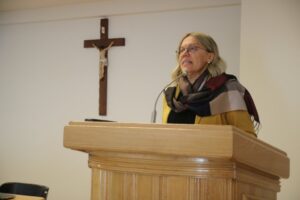 „Naša nutrina utječe kako vidimo neku stvarnost. Krist je cijelo vrijeme s nama, u sakramentima. Često ga ne prepoznajemo kad smo zauzeti, frustrirani i sl. Učenici su ga prepoznali u lomljenju kruha. I mi Isusa prepoznajemo kad smo slomljeni, kako vi svećenici, tako i mi, vjernici laici. To su prilike za doprijeti do ljudi“, poručila je te dodala: „Onaj tko ima iskustvo živoga Boga, ne skreće pozornost na sebe, nego pokazuju od sebe!“