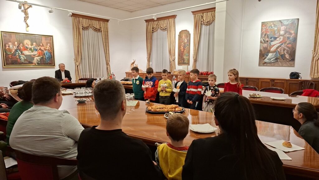 Susret je započeo slavljem mise u biskupskoj kapeli. U propovijedi se biskup Radoš obratio ponajprije učenicima škole te im govorio o sv. Nikoli kao čovjeku koji je dobro činio tiho, bez želje da ga drugi vide ili nagrade. Djeci je ispričao i poznatu priču o trima djevojkama kojima je sv. Nikola potajno pomagao, istaknuvši da prava dobrota djeluje iz ljubavi, a ne radi priznanja.