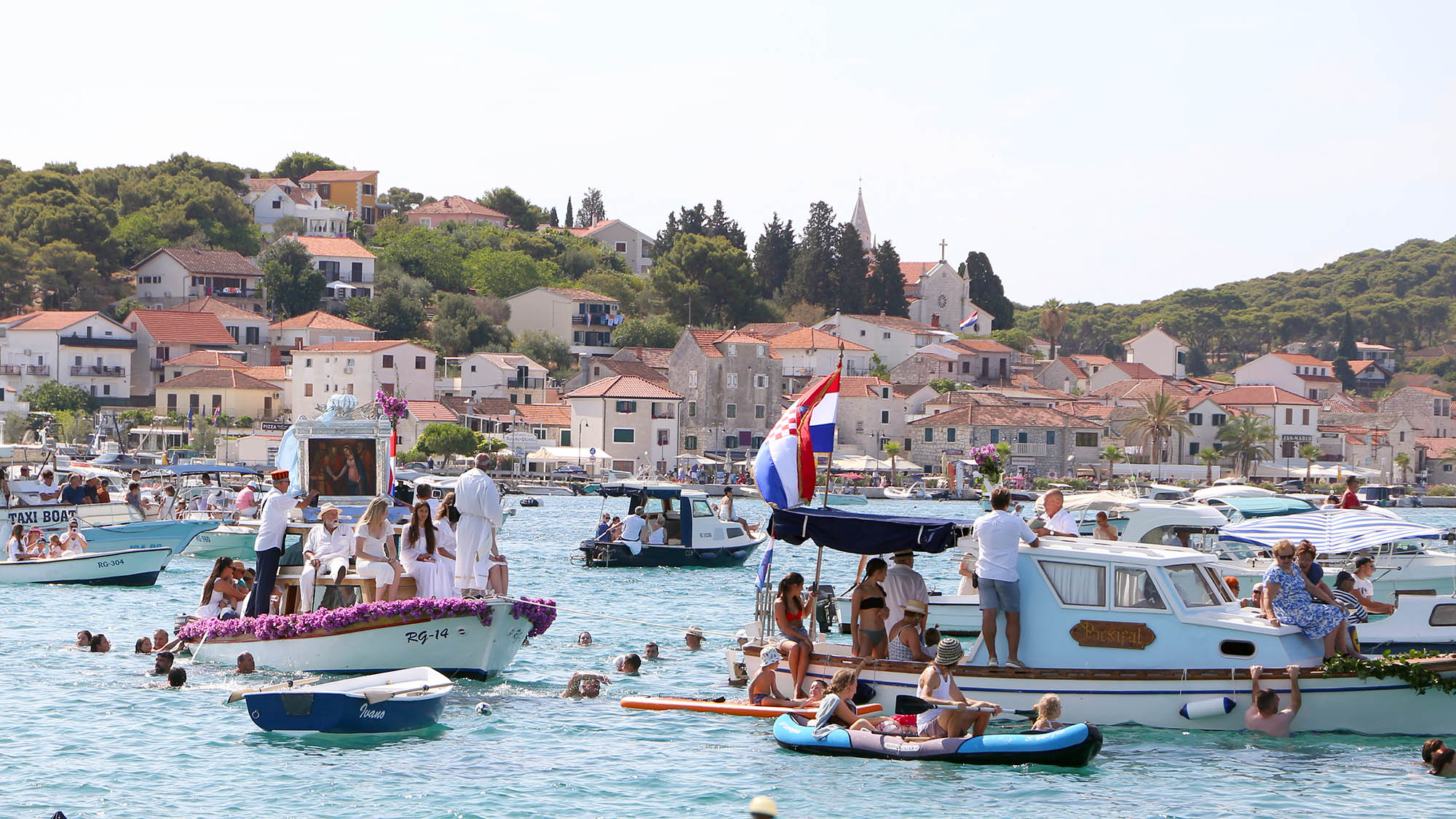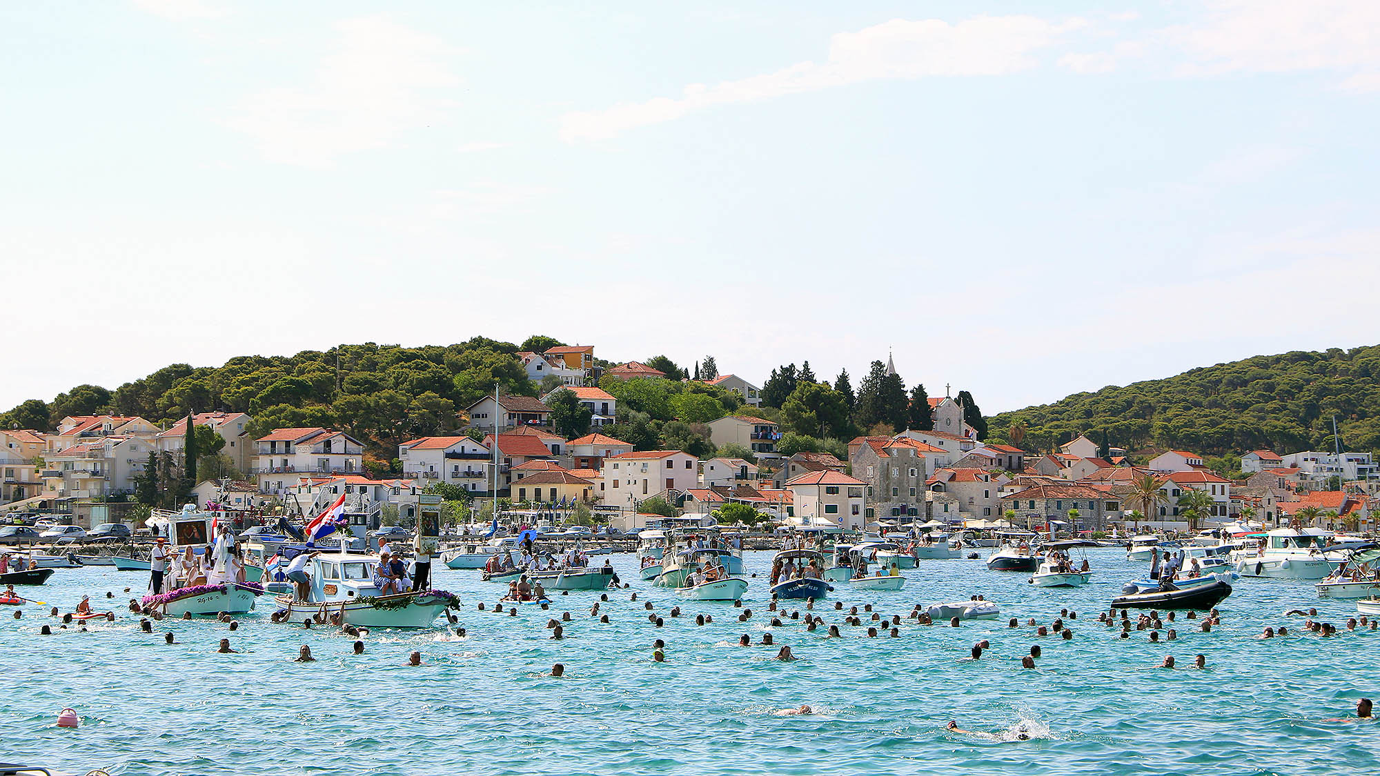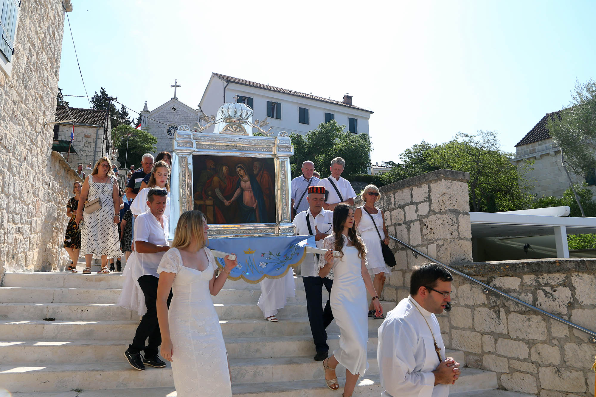 Uz pratnju mnoštva vjernika na kopnu i moru, s više od stotinu brodica i desetak plivača, slika je prevezena brodom od župne crkve do svetišta. Vrhunac proslave bila je svečana misa ispred kapelice na Gradini, koju je predvodio biskup Rogić, uz koncelebraciju župnika don Filipa Rodića i tajnika don Ivicu Bašića.