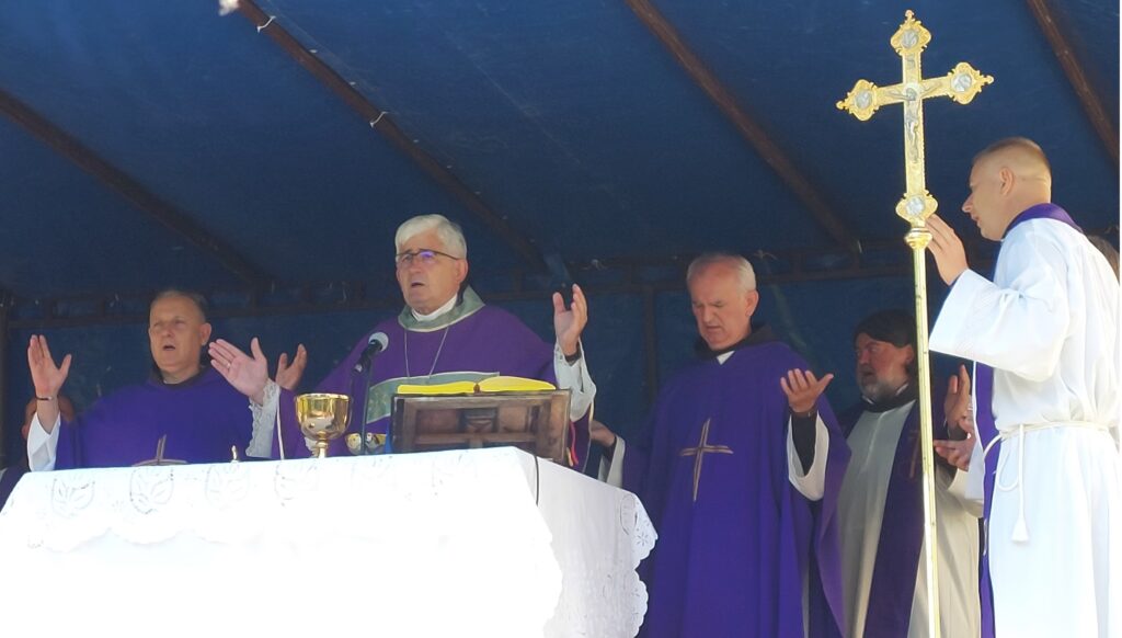 „No, ne čini li nam se potrebnim danas postaviti neka pitanja: Kako mi danas živimo dar slobode? Po kojem duhu se ravnamo? Po zakonu Duha života u Kristu Isusu koji nas oslobodi od zakona grijeha i smrti, koji je nadahnjivao hrabre branitelje i ohrabrivao ih pred vratima tjelesne smrti kako bi ušli u život ili po zakonu tijela?“, upitao je biskup i nastavio s pitanjima. „Je li neumjesno danas se pitati zašto su nam ognjišta sve praznija, zemlja krvlju natopljena, žuljevima obrađivana, suzama i znojem zalijevana sve pustija? Zašto nam se iz obiteljskih kuća više ne čuje plač djece nego bolni jauk često ostavljenih i zaboravljenih staraca? Zašto nam je srcu bliža i draža ‘daleka Amerika’ nego ova od Boga darovana zemlja? Je li neumjesno upitati nositelje civilne vlasti na svim razinama, zašto se često oslobađaju od brige za opće dobro – što je bit svake ispravne i pravedne politike – a više se bave samima sobom i vlastitim, parcijalnim i stranačkim interesima? Je li neumjesno upitati i nas službenike Crkve, jednako biskupe, svećenike i osobe posvećenog života, zašto često zaboravljamo da smo ‘iz naroda za narod’, a ne svećenici, redovnici i redovnice za sebe i za svoje uže zajednice?“ pitao je biskup Majić.