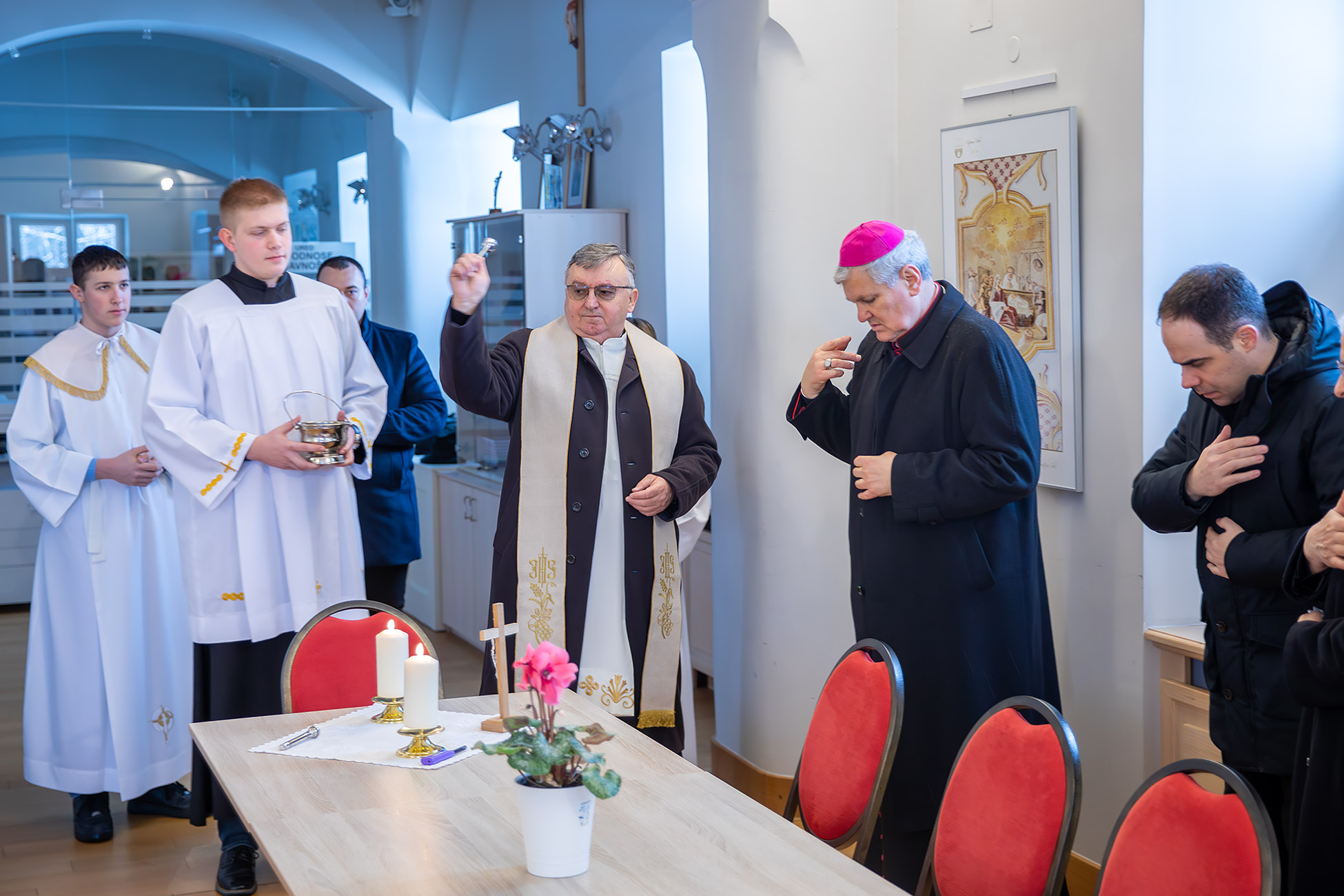 Nakon mise, već tradicionalno, katedralni župnik blagoslovio je Biskupijski ordinarijat, a potom je biskup blagoslovio župni stan katedralne župe.