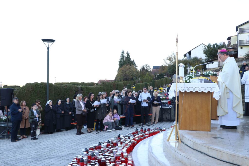 Na kraju je pozvao vjernike da njihova molitva i sjećanje na pokojne budu „izraz zahvalnosti i ljubavi, ali i osobni poticaj za rast u osobnoj svetosti, jer jedino nas svetost vodi u nebesku slavu gdje su svi sveti“, zaključio je biskup te je preporučio sve pokojne zagovoru Blažene Djevice Marije, Kraljice svih svetih, moleći njezinu zaštitu za obitelji i cijelu Crkvu. Nakon popričesne molitve, biskup je izmolio molitvu odrješenja za sve pokojne koji počivaju na požeškim grobljima te je blagoslovio grobove.