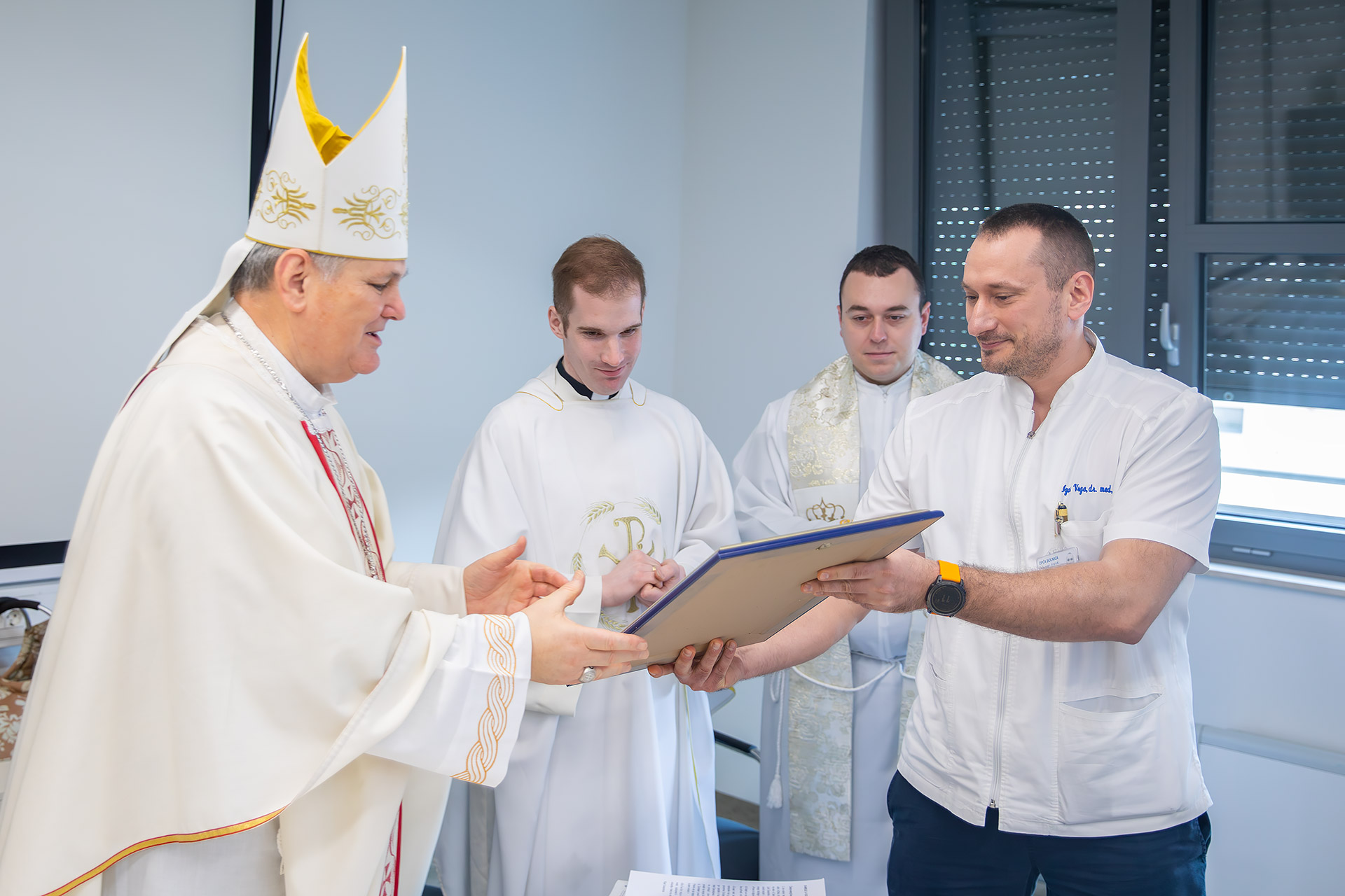 Na početku su biskupa pozdravili ravnatelj Vrga i zamjenica Jozić Novinc, zahvalivši mu na dolasku i izrazivši nadu da će sljedeći Dani bolesnika biti proslavljeni u obnovljenoj bolničkoj kapeli sv. Vinka Paulskog.
