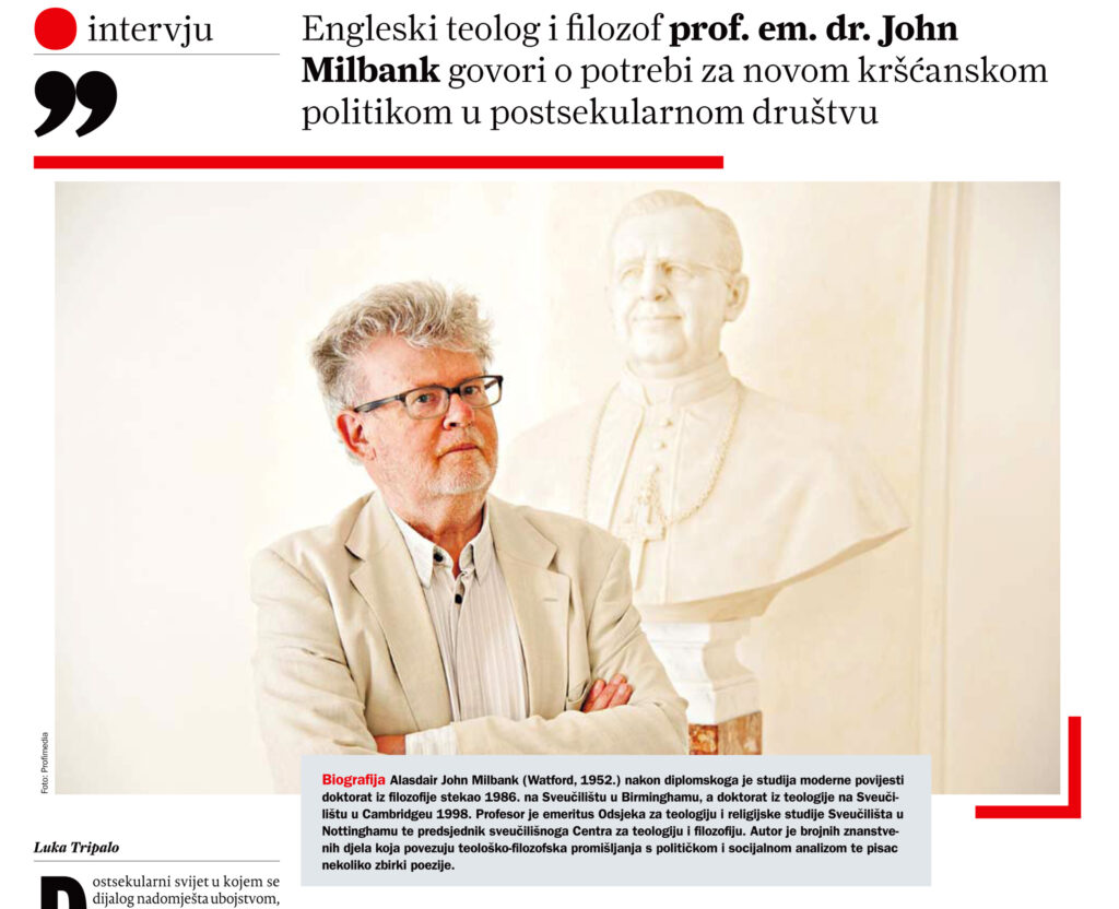 Novi broj Glasa Koncila donosi razgovor o potrebi za novom kršćanskom politikom u postsekularnom društvu s profesorom emeritusom Sveučilišta u Nottinghamu dr. Johnom Milbankom, izvijestili su iz Uredništva.
