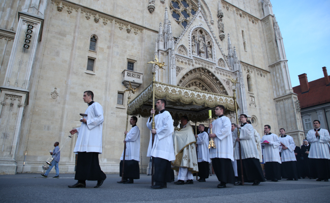 Svečanim euharistijskim slavljem koje je predvodio zagrebački pomoćni biskup Ivan Šaško i Tijelovskom procesijom u zagrebačkoj katedrali proslavljeno je Tijelovo.