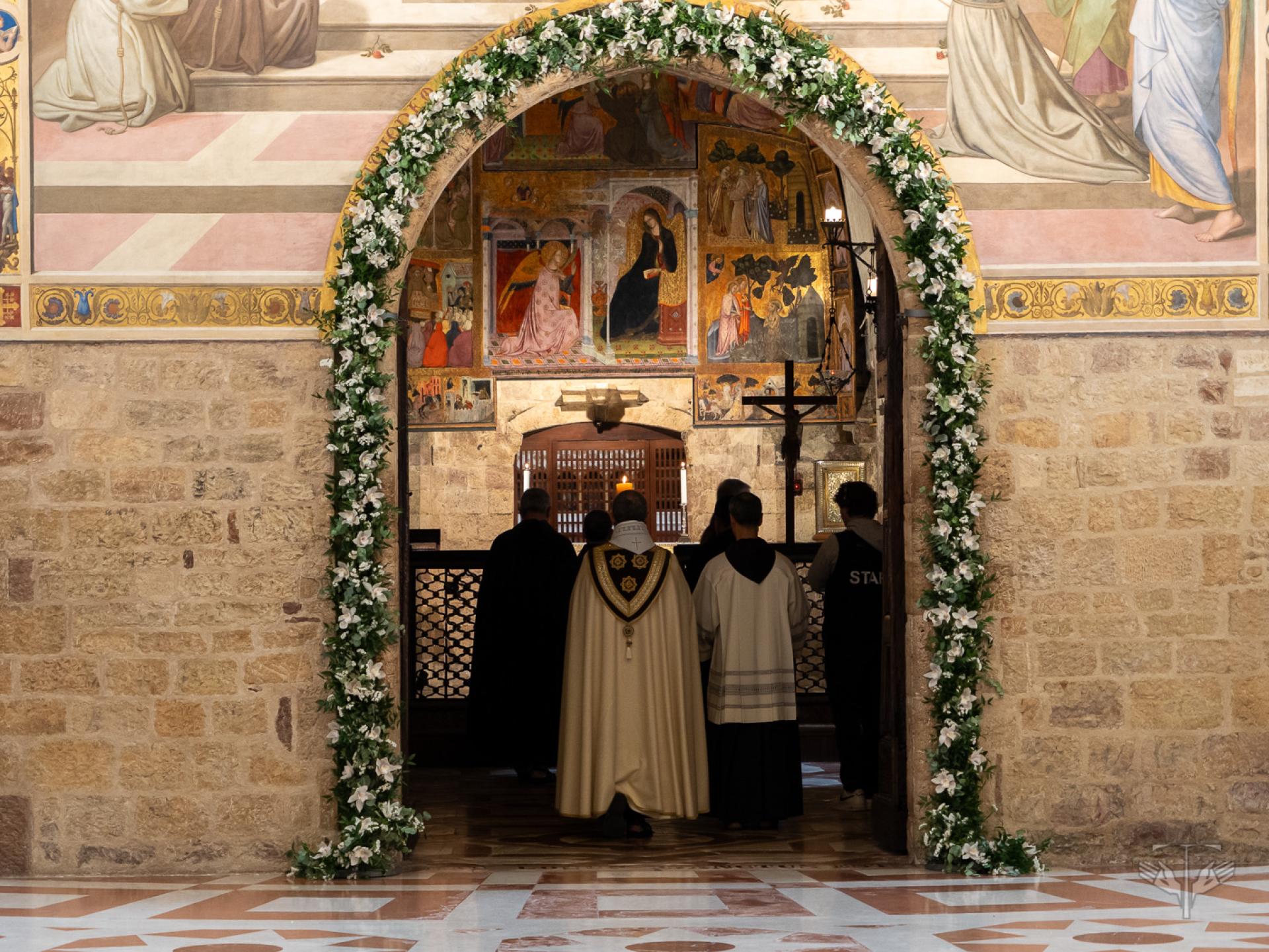 Procesija je stigla do Kapele preminuća, mjesta Franjinih posljednjih zemaljskih trenutaka, gdje je svijeća upaljena s pashalne svijeće, simbola uskrslog Krista. Odatle je svjetlost prenesena do šest bočnih postaja bazilike, a svaka je povjerena jednoj od šest grana franjevačke obitelji.