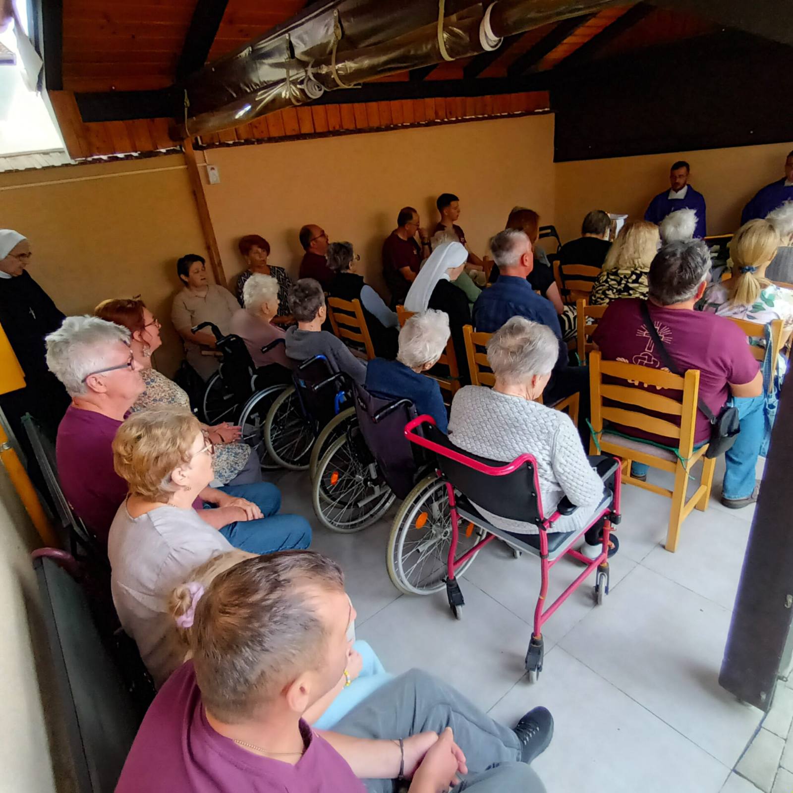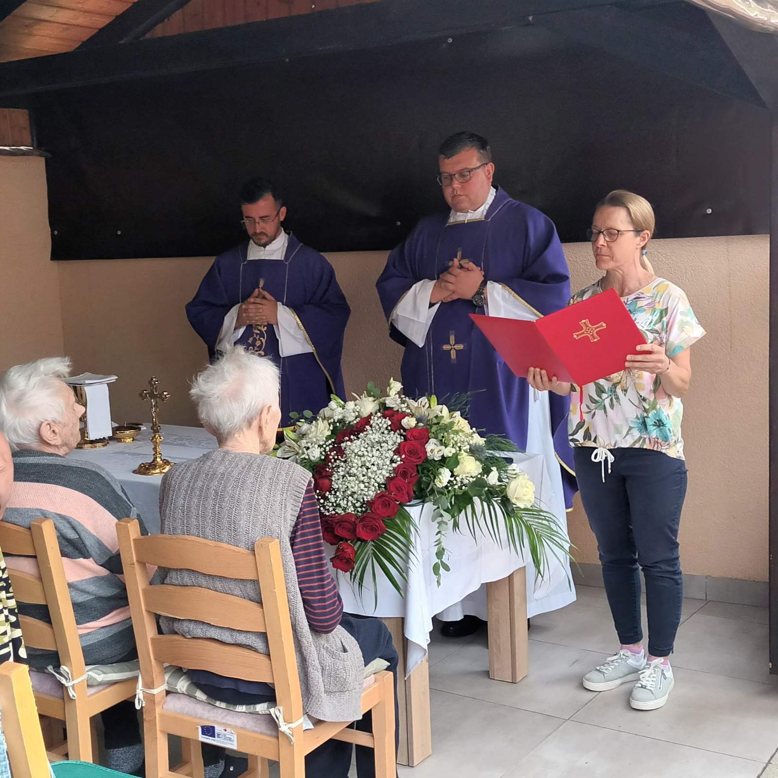 Misu je predvodio župnik Župe Presvetog Trojstva Ivan Popić u zajedništvu sa župnikom Župe sv. Antuna Padovanskog Dejanom Ilićem. Na misi su osim korisnika i djelatnika Doma sudjelovali i gradonačelnik Grada Daruvara Damir Lneniček sa zamjenicom Vandom Cegledi, ravnatelj Veteranskog centra u Daruvaru Dren Stoček, ravnateljica Gradskog doma Ljudevite pl. Janković Marina Vulinović, Molitvena zajednica Krvi Kristove iz obje daruvarske župe te muška udruga Baruh uz druge vjernike.
