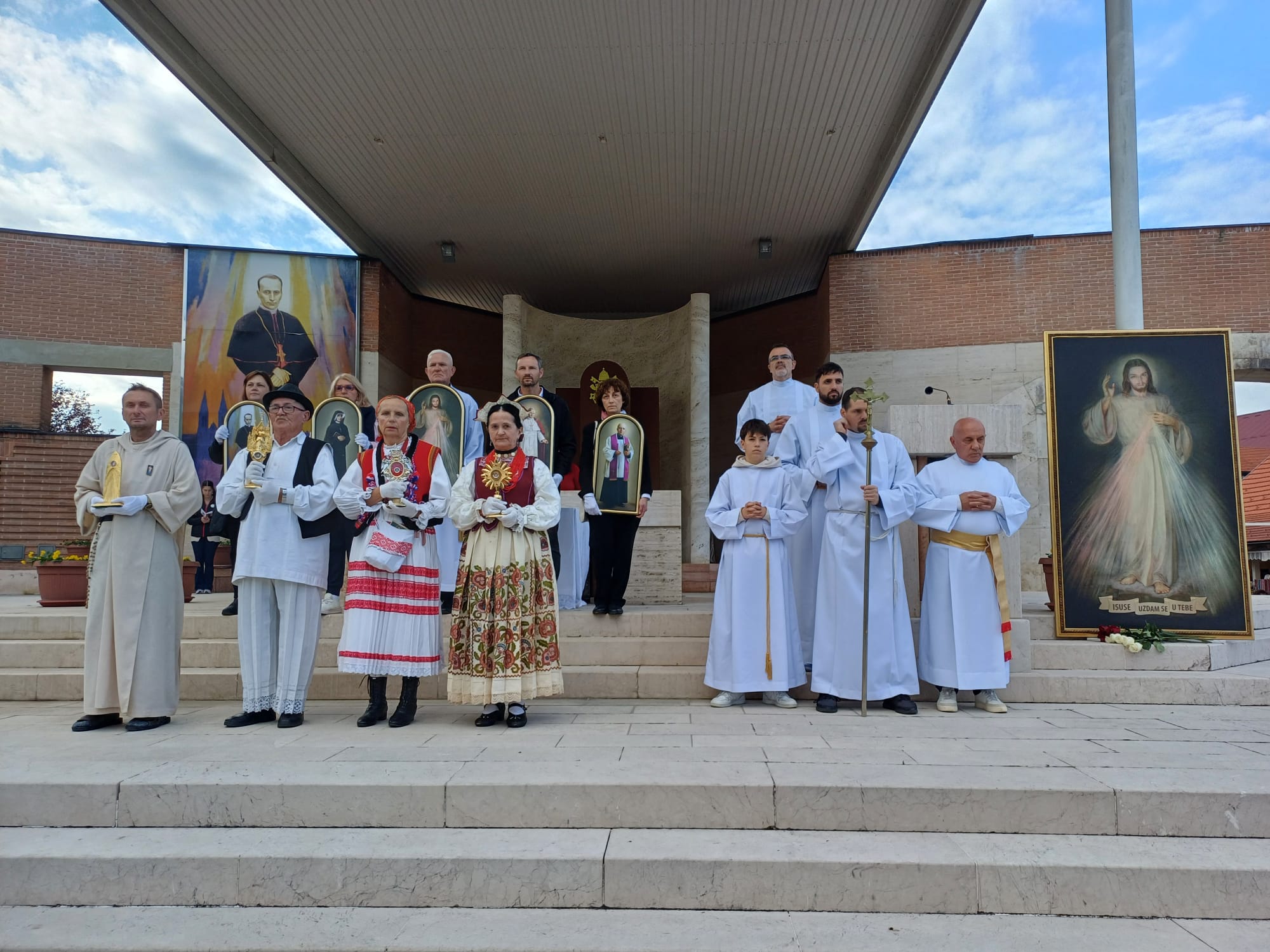 Pjevao je Mješoviti zbor Konkatedralne župe sv. Petra i Pavla iz Osijeka pod ravnanjem s. Branke Čuture i uz orguljsku pratnju mo. Dalibora Ratića. U ulaznoj procesiji, uz ministrante iz različitih župa, sudjelovali su i vjernici u narodnim nošnjama koji su nosili slike Milosrdnog Isusa i svetaca Milosrđa – sv. Faustine Kowalske, sv. Ivana Pavla II., bl. Mihaela Sopoćka i bl. Alojzija Stepinca te njihove relikvije.