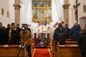 Nakon izlaganja uslijedilo je euharistijsko slavlje koje je predvodio požeški biskup Ivo Martinović, a koncelebrirali su provincijal fra Branko Lovrić, generalni vikar Krčke biskupije mons. Franjo Velčić te fratri iz portanskoga, glavotočkoga, krčkoga i riječkoga samostana. Pjevanje, koje je jednim dijelom bilo na hrvatskome crkvenoslavenskome jeziku, predvodio je Zbor crkve sv. Marije Magdalene u Portu na čelu s Ivanom Šabaljom.