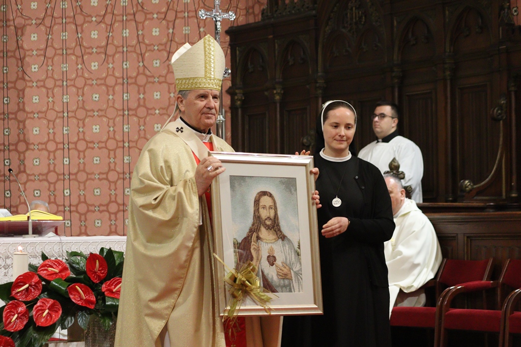 Na kraju misnog slavlja vrhovna glavarica Družbe sestara Služavki Maloga Isusa s. M. Anđa Vranješ uputila je riječ zahvale, najprije Bogu za sve Njegove darove i milosti koje je Družbi udijelio kroz 135 godina služenja Malome Isusu po uzoru na oca Utemeljitelja, sluge Božjega Josipa Stadlera, a zatim prisutnima koji su sudjelovali u euharistijskom slavlju i doprinijeli da ono bude svečano i dostojanstveno. Posebno je zahvalila predslavitelju misnog slavlja nadbiskupu Vukšiću. U govoru vrhovna glavarica istaknula je važnost sarajevske katedrale Presvetoga Srca Isusova za Družbu kao mjesta gdje počivaju zemni ostaci njena utemeljitelja sluge Božjega Josipa Stadlera i živog spomena na utemeljiteljev život i djelo. Spominjući se žarke ljubavi Utemeljitelja prema Božanskome Srcu kojem je posvetio cijelu Vrhbosansku nadbiskupiju, posvete čitavog hrvatskog naroda tom Srcu učinjene na poziv biskupa Hrvatske biskupske konferencije i Biskupske konferencije BiH 27. lipnja 2025. i posvete Družbe sestara Služavki Maloga Isusa od 1974., vrhovna glavarica s. M. Anđa Vranješ uručila je nadbiskupu Vukšiću u znak zahvalnosti dar – sliku Presvetoga Srca Isusova.