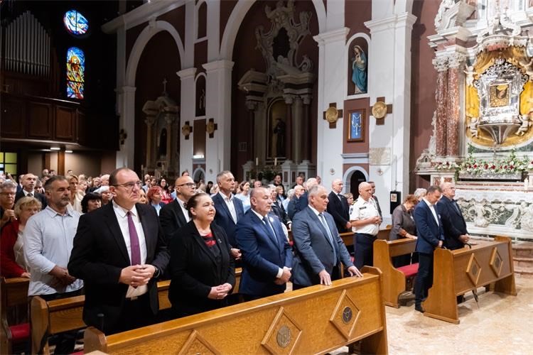Potom je u bazilici Čudotvorne Gospe Sinjske služena misa koju je predvodio župnik fra Antonio Mravak uz gvardijana i rektora bazilike fra Marinka Vukmana. U propovijedi fra Antonio je istaknuo kako se hrvatski branitelji nisu borili i žrtvovali svoje živote za sebe, nego za svoje bližnje. Uputio je na važnost oprosta i pronalaska svih nestalih te dostojan ukop svih žrtava kao kršćanskog i civilizacijskog dosega.