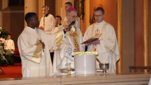 Uslijedio je blagoslov krsnog studenca, podjela sakramenata, škropljenje naroda blagoslovljenom vodom te euharistijska služba. Biskup Ćurić na kraju je potaknuo katekumene, ali i sve vjernike, na neizostavno sudjelovanje na euharistijskim slavljima svake nedjelje, osobnu molitvu, poniranje u nutrinu te uključenje u život svoje župne zajednice – kako bi nastavili hod u vjeri koji su sada započeli.