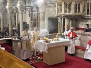 Vazmeno bdjenje na Veliku subotu, 4. travnja, u katedrali svetoga Jakova u Šibeniku predvodio je šibenski biskup Tomislav Rogić, izvijestio je Ured za informiranje Šibenske biskupije.