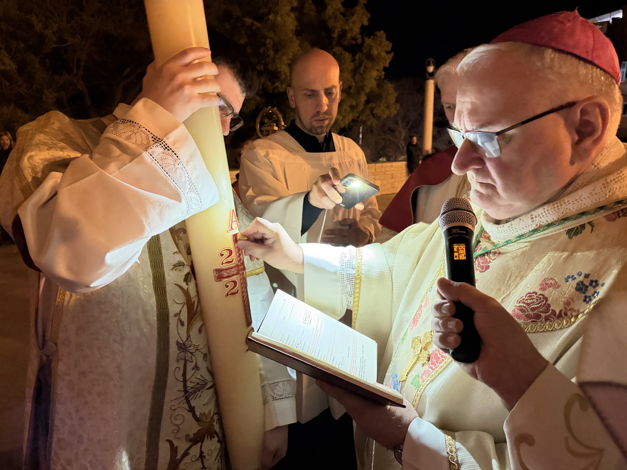 Slavlje je počelo blagoslovom ognja i ulaskom Svjetla Kristova u katedralu, čime je simbolično označena pobjeda uskrsloga Gospodina nad tamom grijeha i smrti. Potom je don Krešimir Mateša otpjevao Hvalospjev uskrsnoj svijeći, nakon čega je uslijedila Služba riječi, bogata starozavjetnim i novozavjetnim čitanjima koja su vjernike provela kroz povijest spasenja. U nastavku slavlja blagoslovljen je krsni zdenac te su obnovljena krsna obećanja.